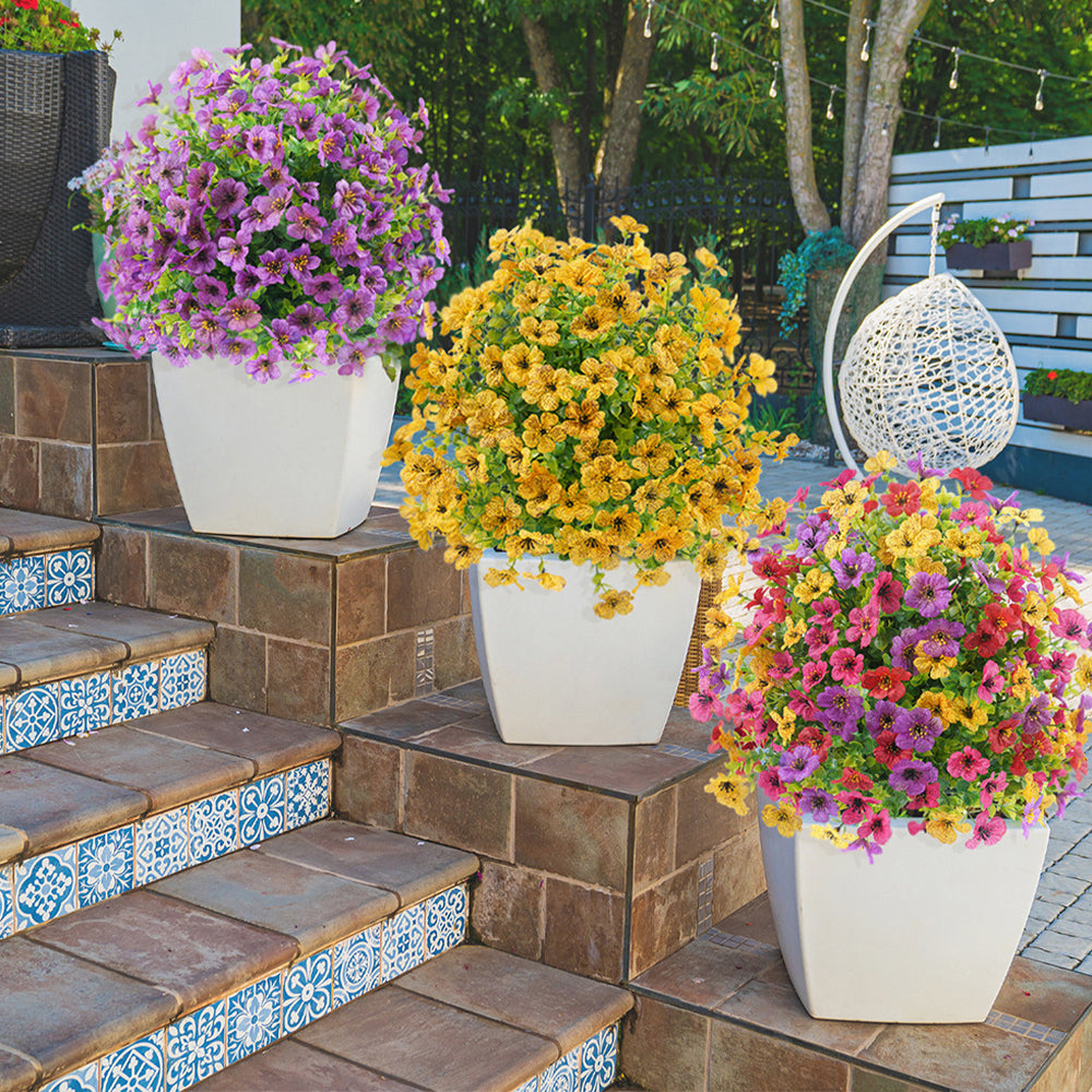 ✨Perfect for Outdoor/Indoor:Plastic flowers are ideal for outdoor porches, walkway, terraces window box, front yard, pots ,hanging planters, gardens, landscape, windowsills, allow you have beautiful color all year around. Also suit for birthdays, weddings, memorial place or grave, they can live anywhere and have withstood heavy rain storms and winds.