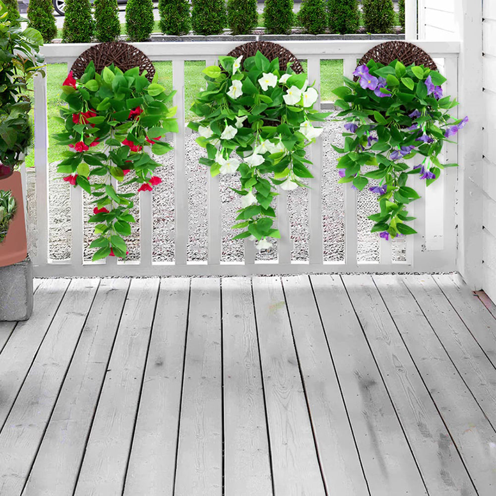 🌸High-quality Materials: The artificial hanging flowers for outdoors are made of high-quality poisonless and harmless PC plastic and silk fabric. You can put this artificial plants & flowers outdoors without any worries because they are double UV-resistant.
