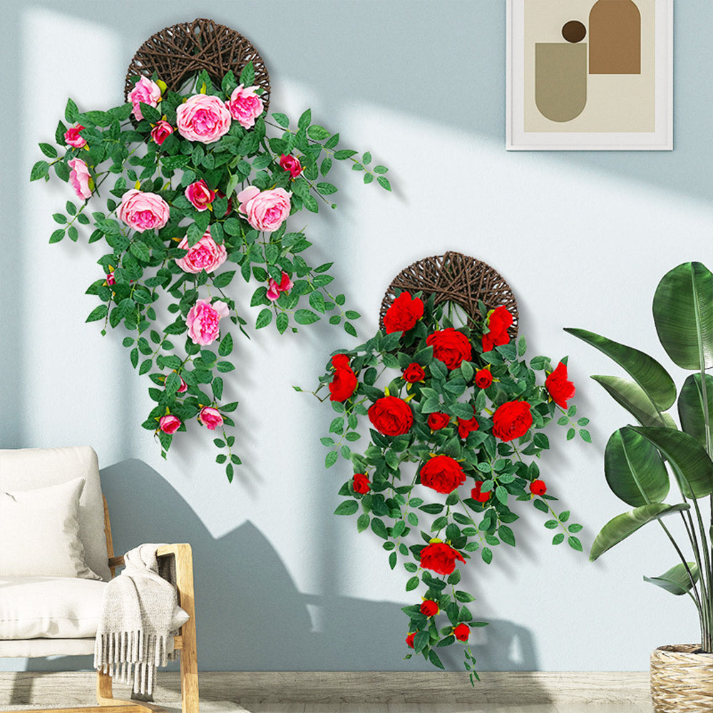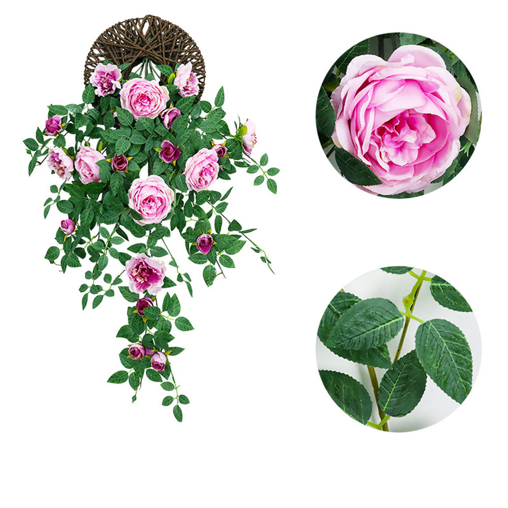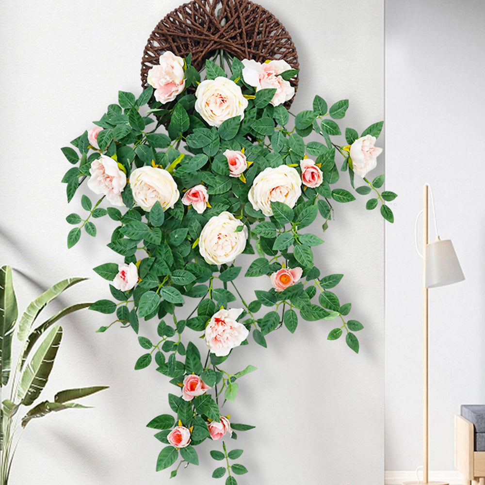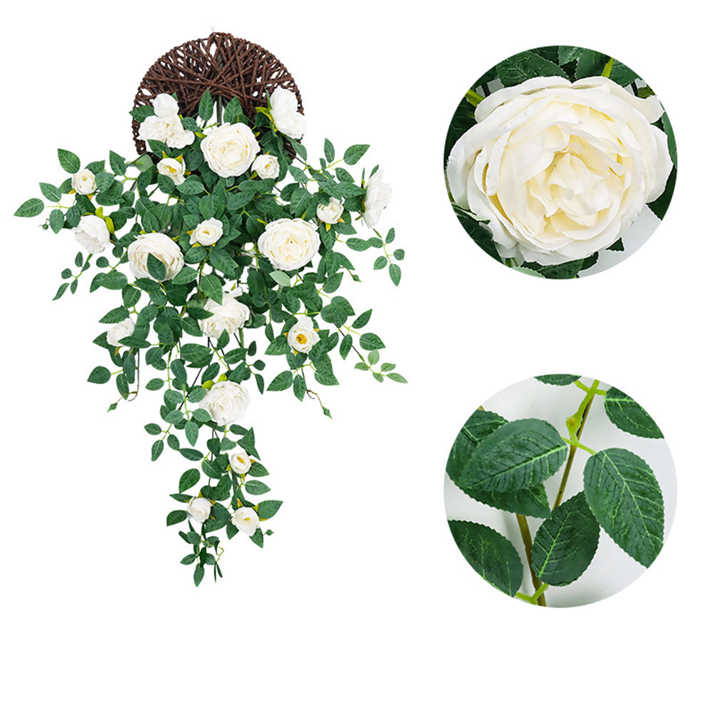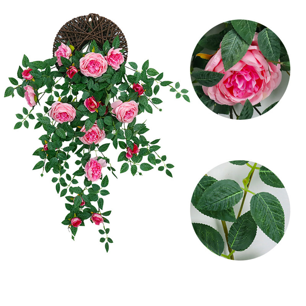 Rose Artificial Hanging Flower Faux Greenery Plants