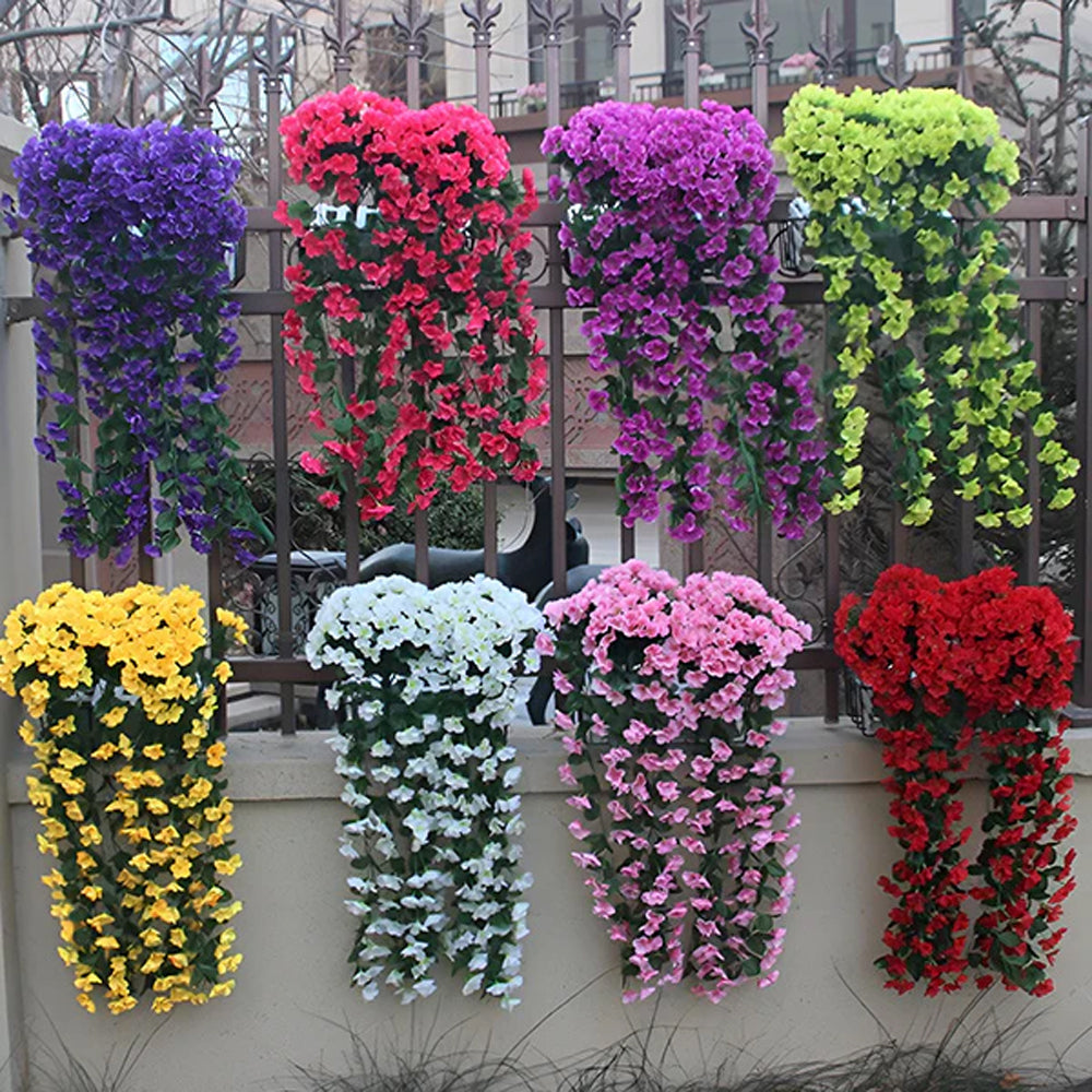 🌸High-quality Materials: The artificial hanging flowers for outdoors are made of high-quality poisonless and harmless PC plastic and silk fabric. You can put this artificial plants & flowers outdoors without any worries because they are double UV-resistant.