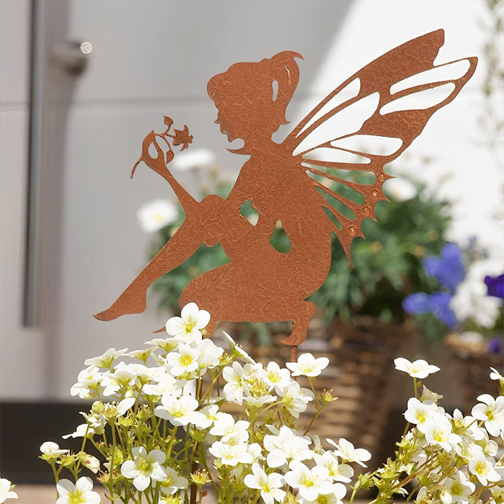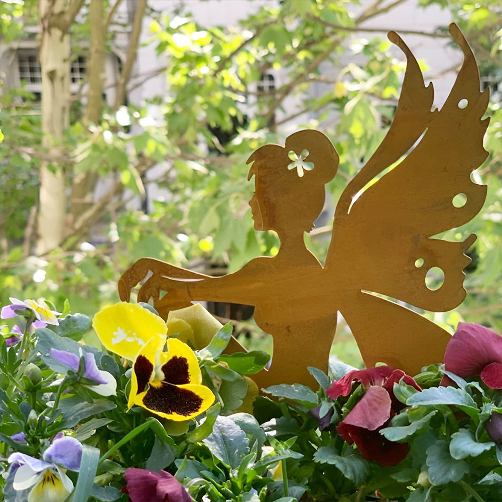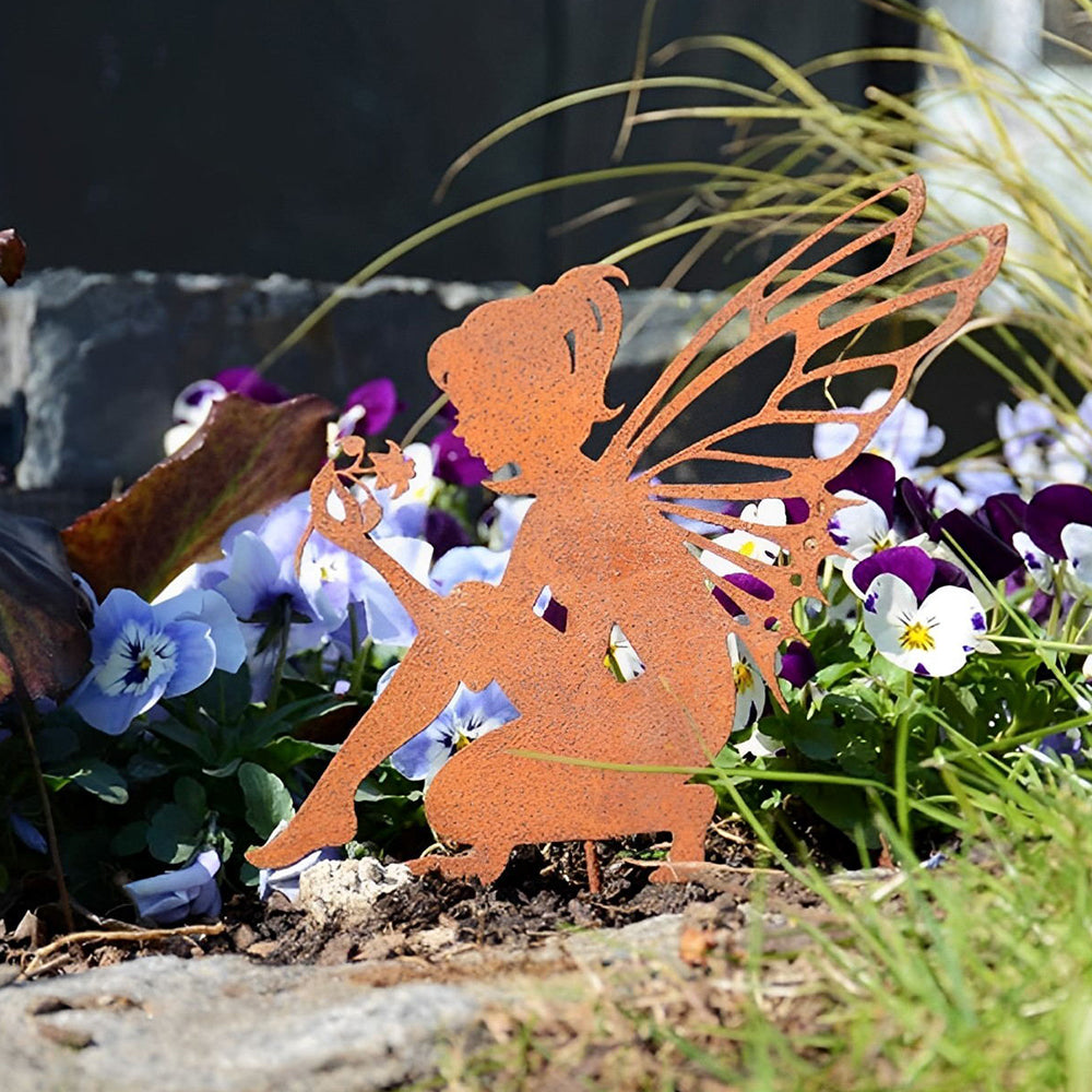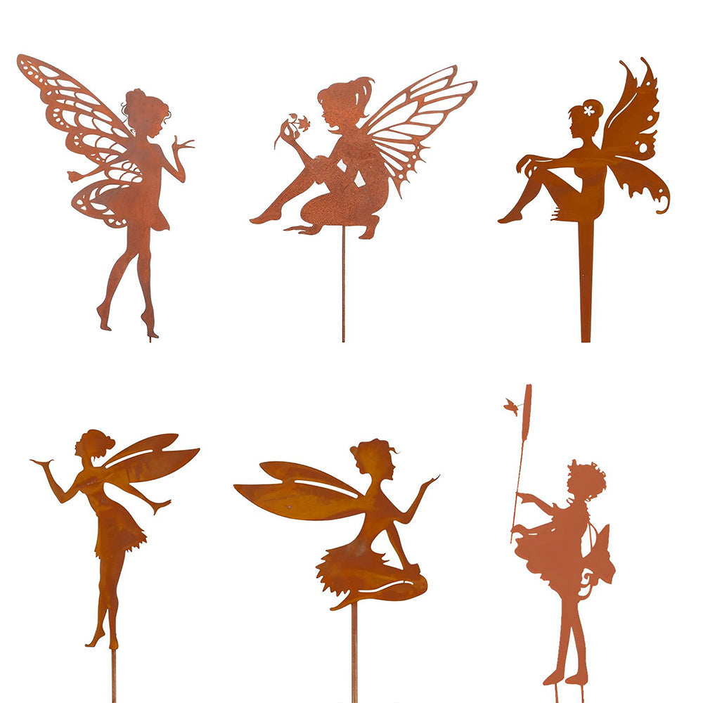 Butterfly Fairy Silhouette Outdoor Metal Garden Markers