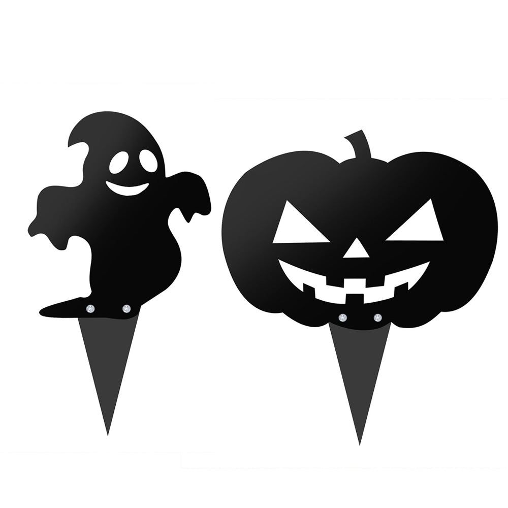 Halloween Pumpkin Ghost Silhouette Outdoor Metal Garden Markers