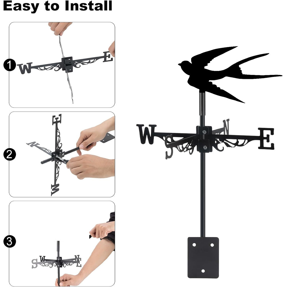 💕Creative design: This Weathervane is made of high-quality Stainless Steel. With stylish straight lines and satin black finishes. This anti-rust iron weather vane is decorated with exquisite patterns.