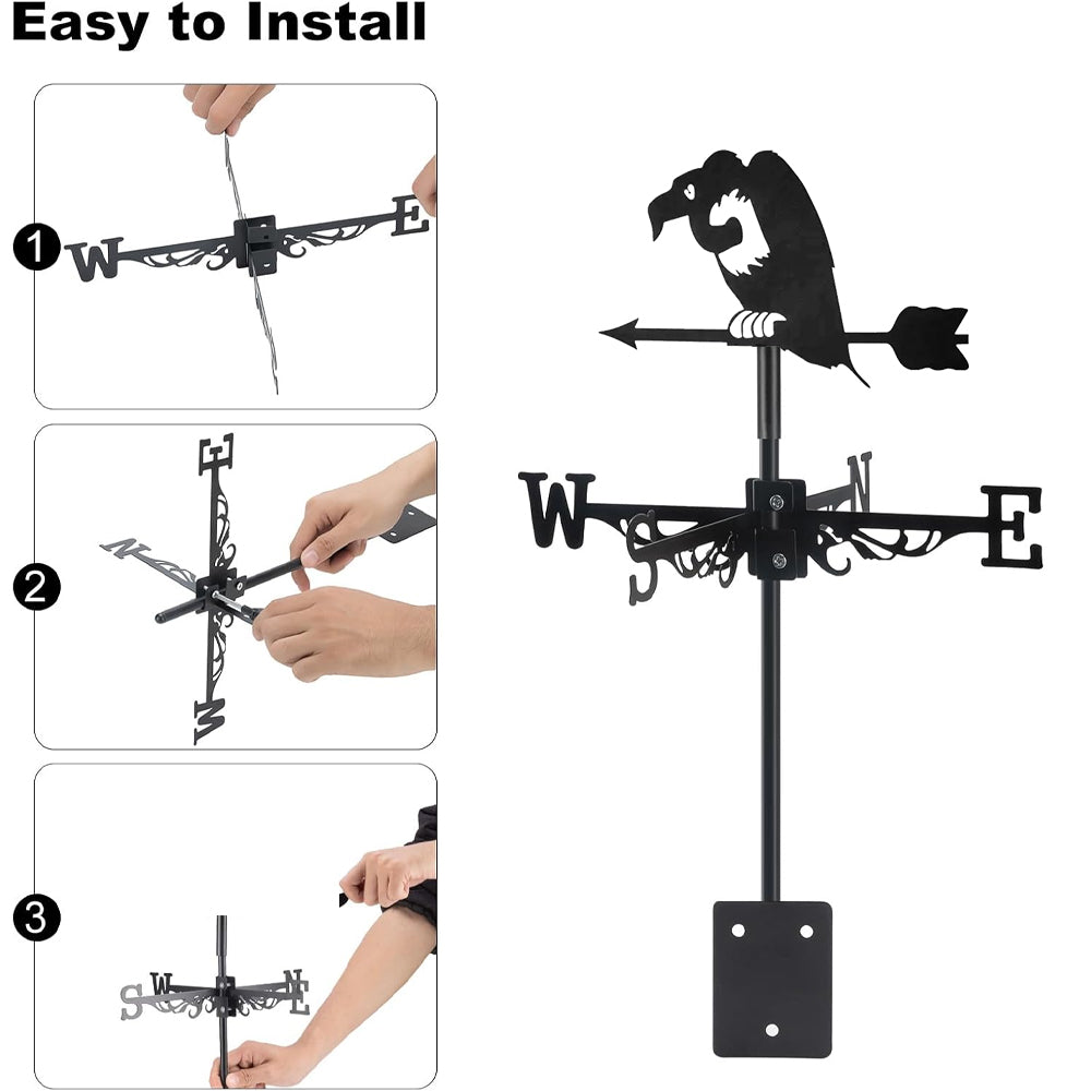 💕Creative design: This Weathervane is made of high-quality Stainless Steel. With stylish straight lines and satin black finishes. This anti-rust iron weather vane is decorated with exquisite patterns.