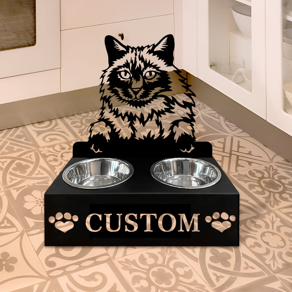 Balinese Cat Personalized Name Pet Food Bowl Holder