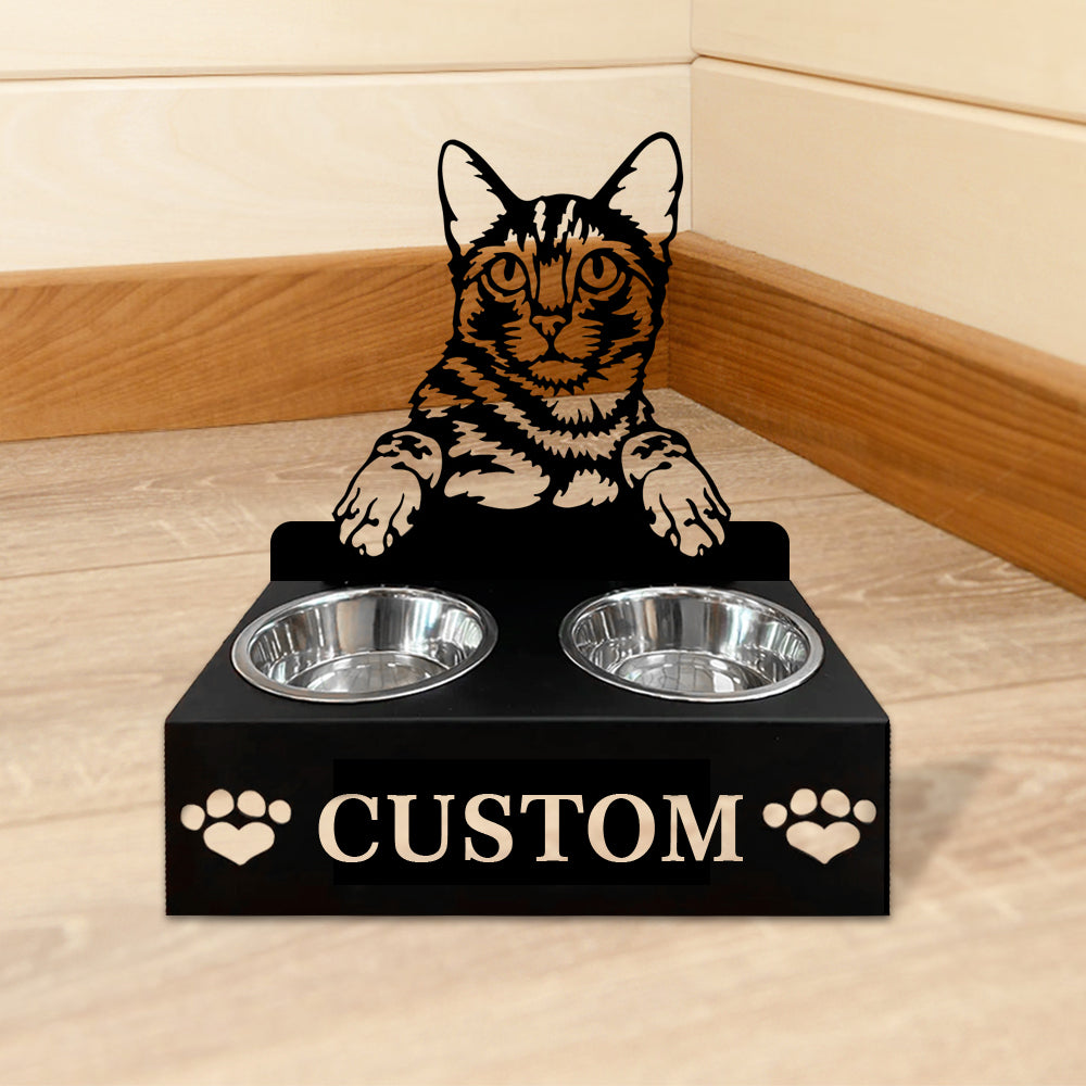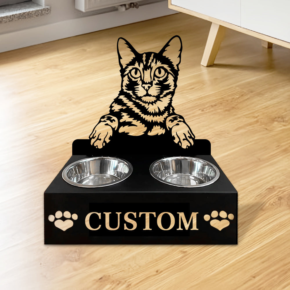 Bengal Cat Personalized Name Pet Food Bowl Holder