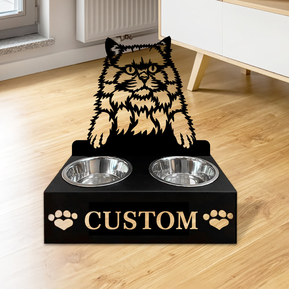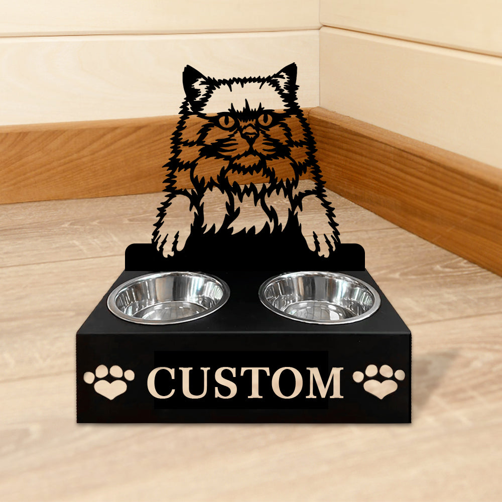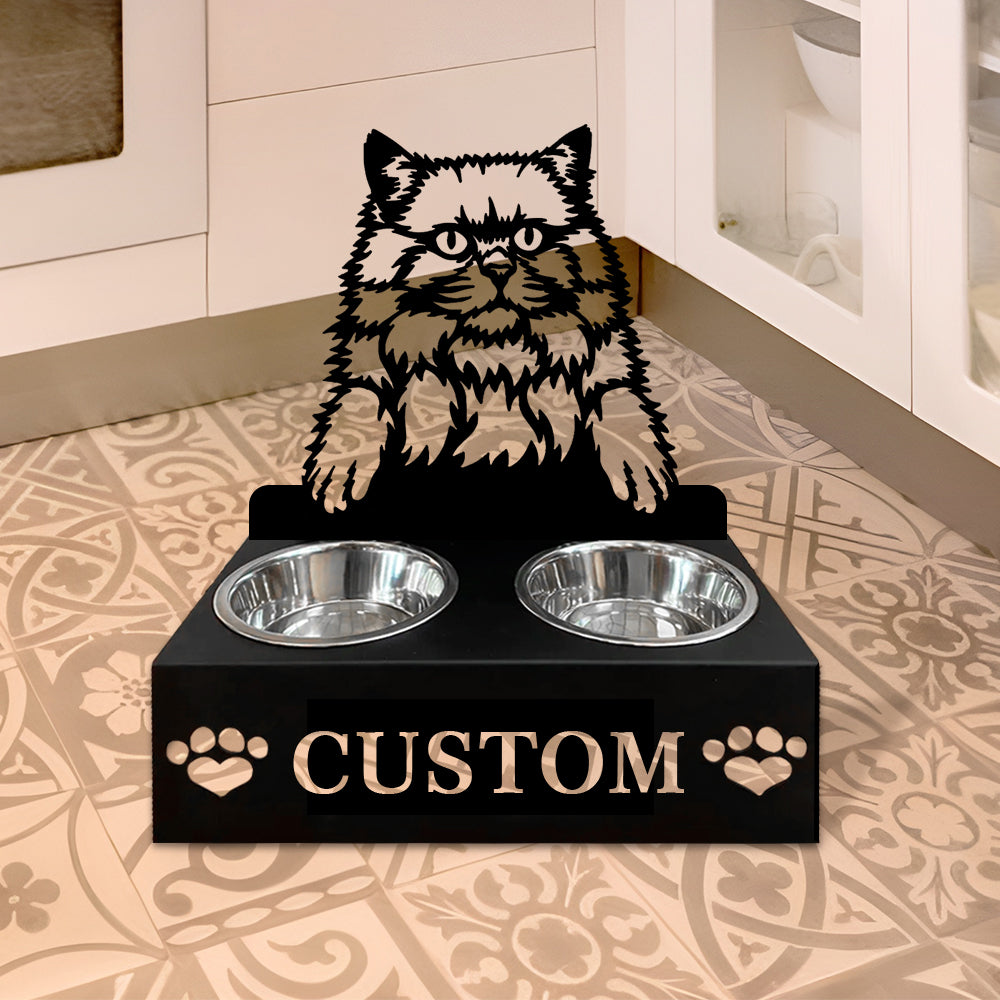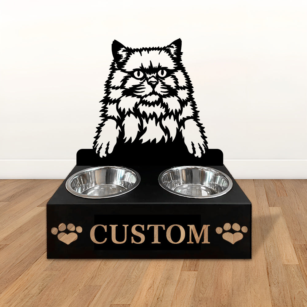 British Longhair Cat Personalized Name Pet Food Bowl Holder