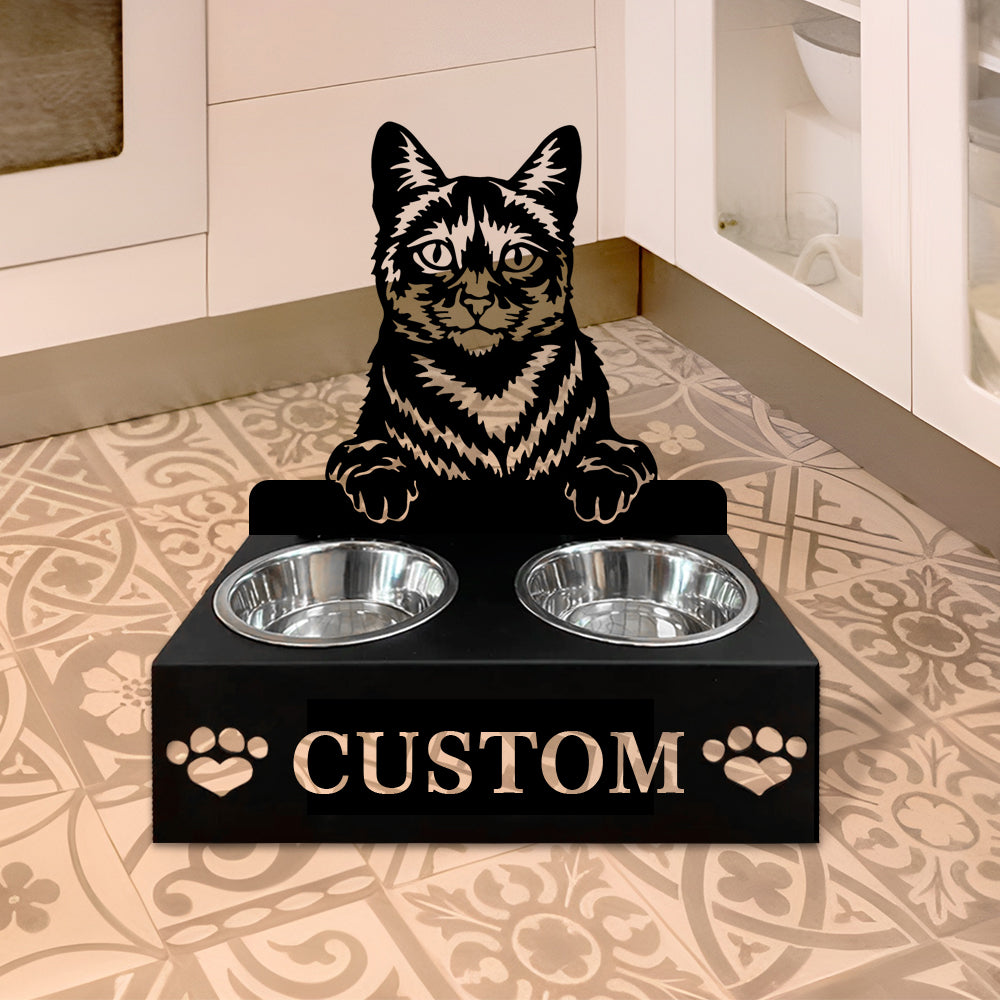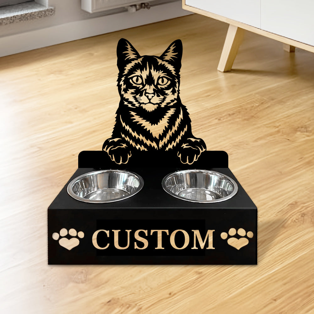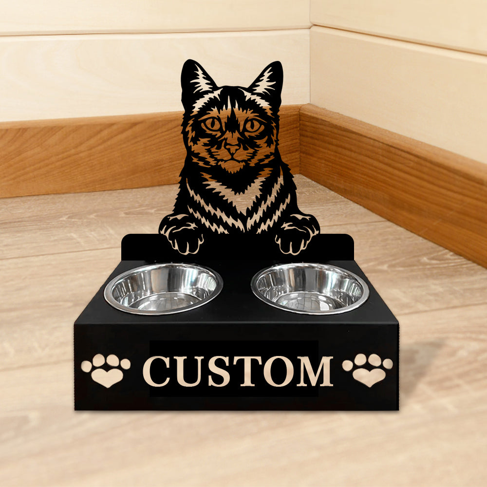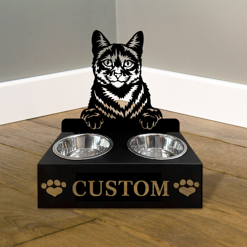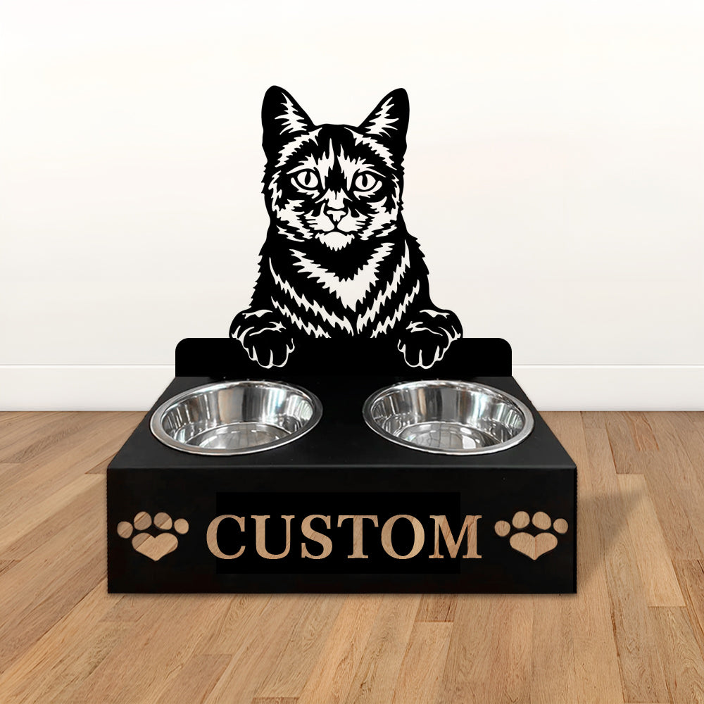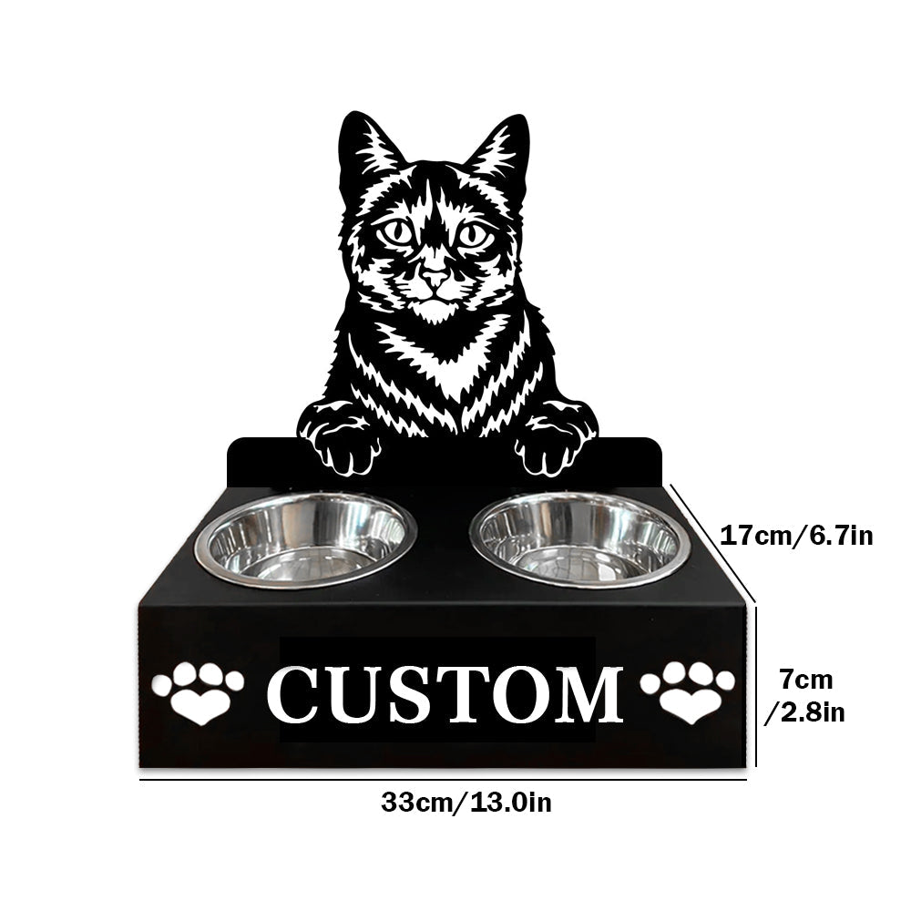 Domestic Cat Personalized Name Pet Food Bowl Holder