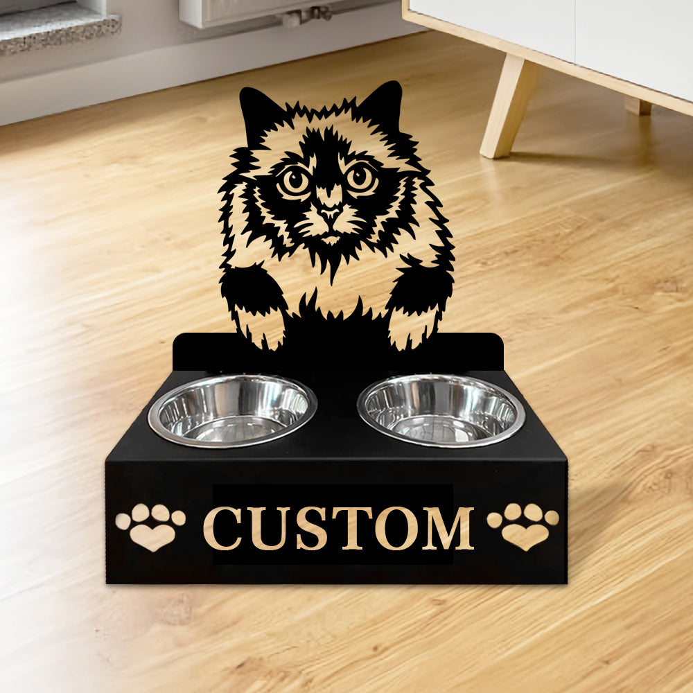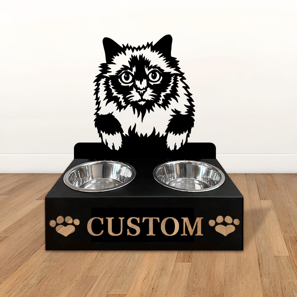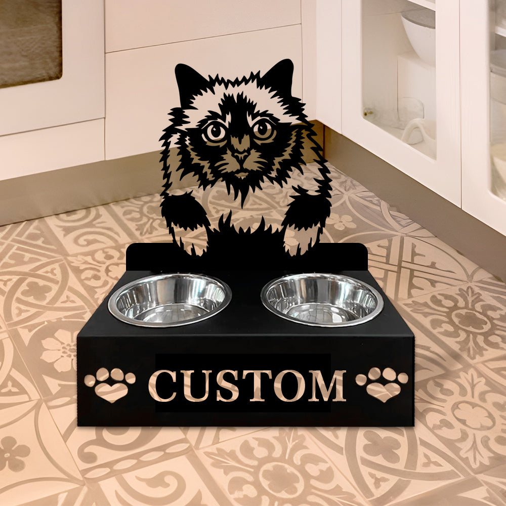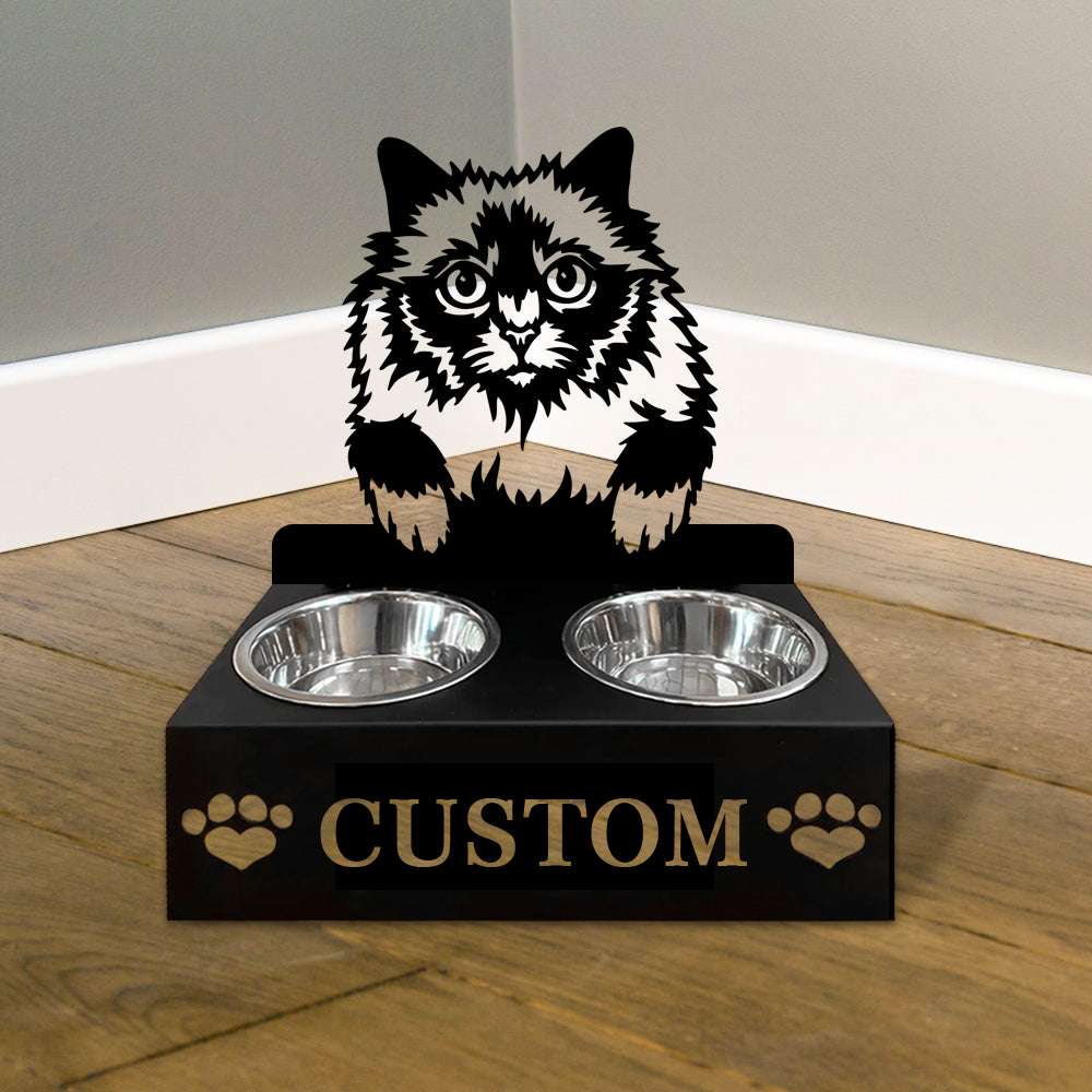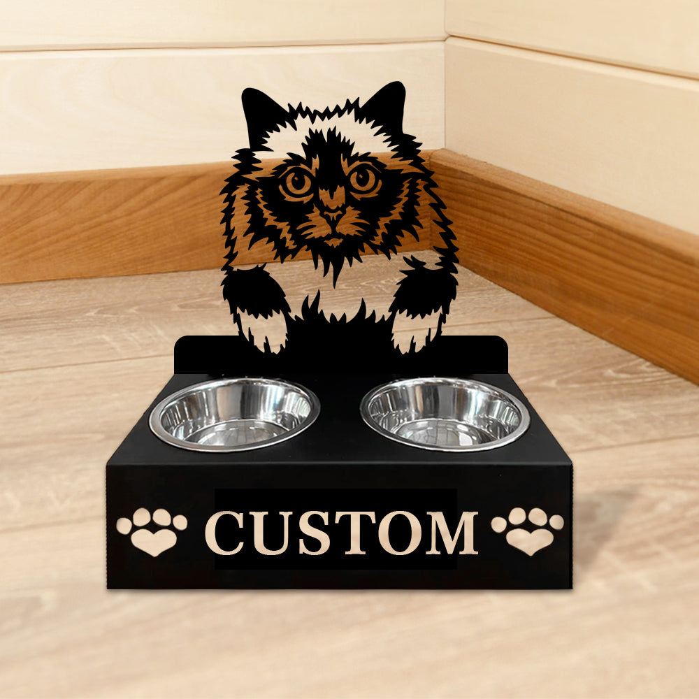 Holy Burma Cat Personalized Name Pet Food Bowl Holder