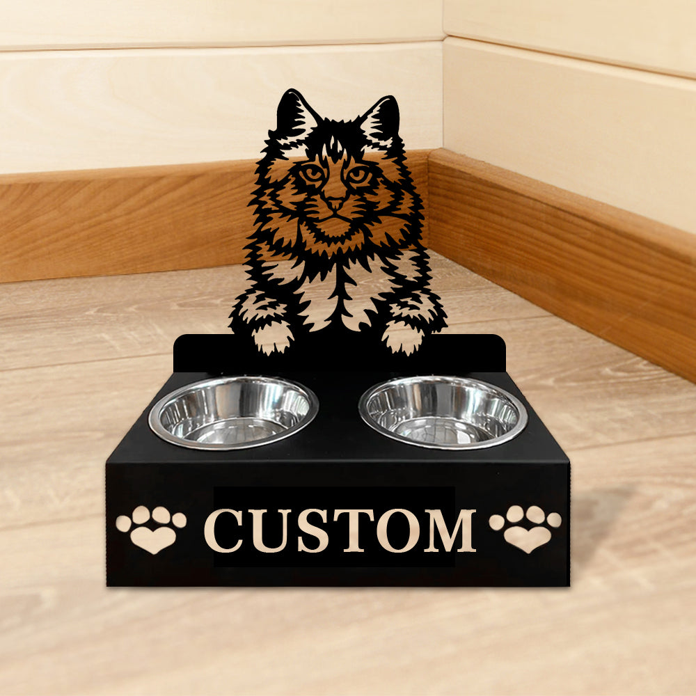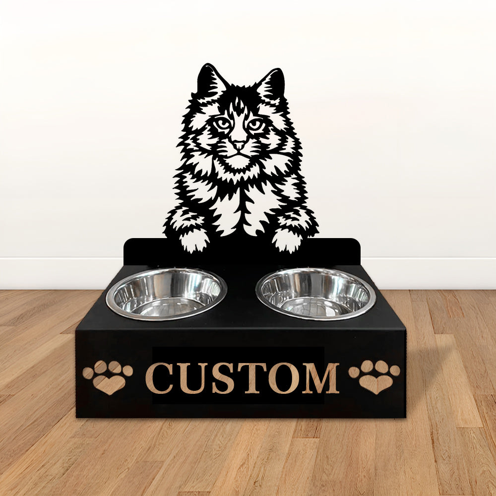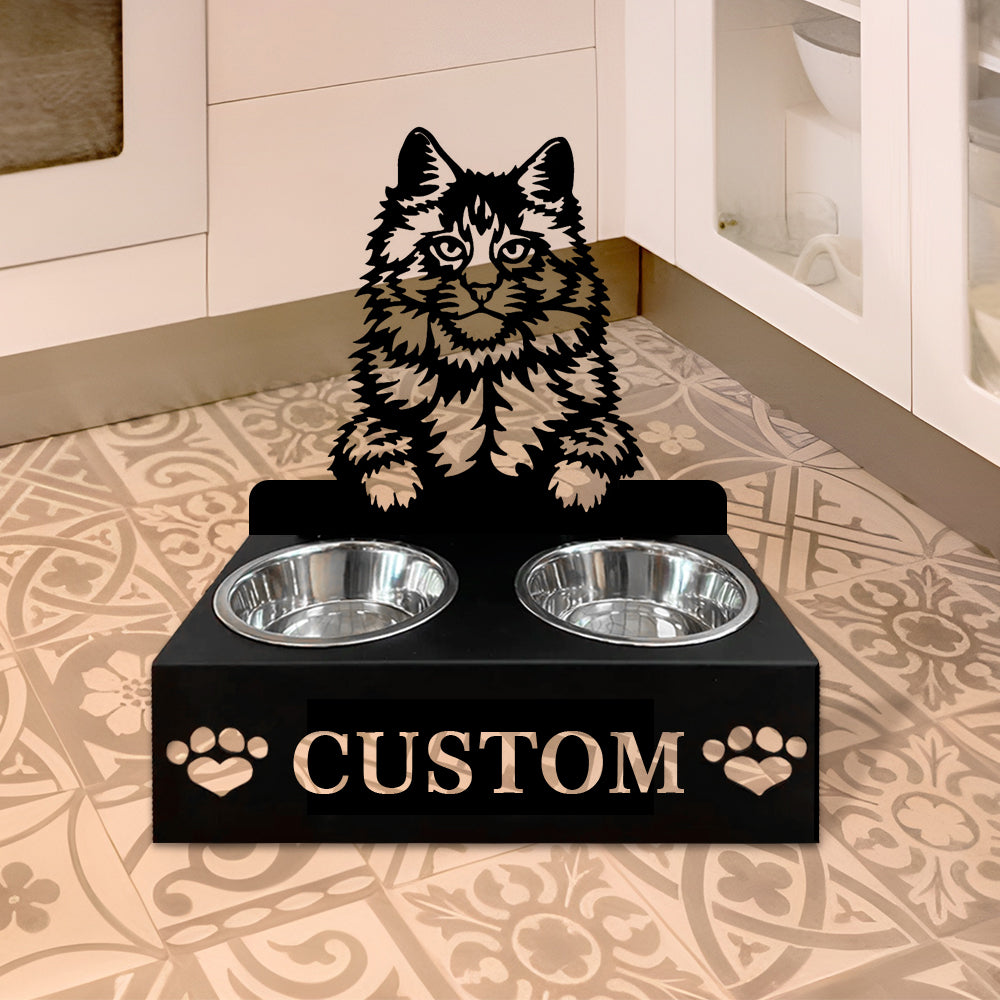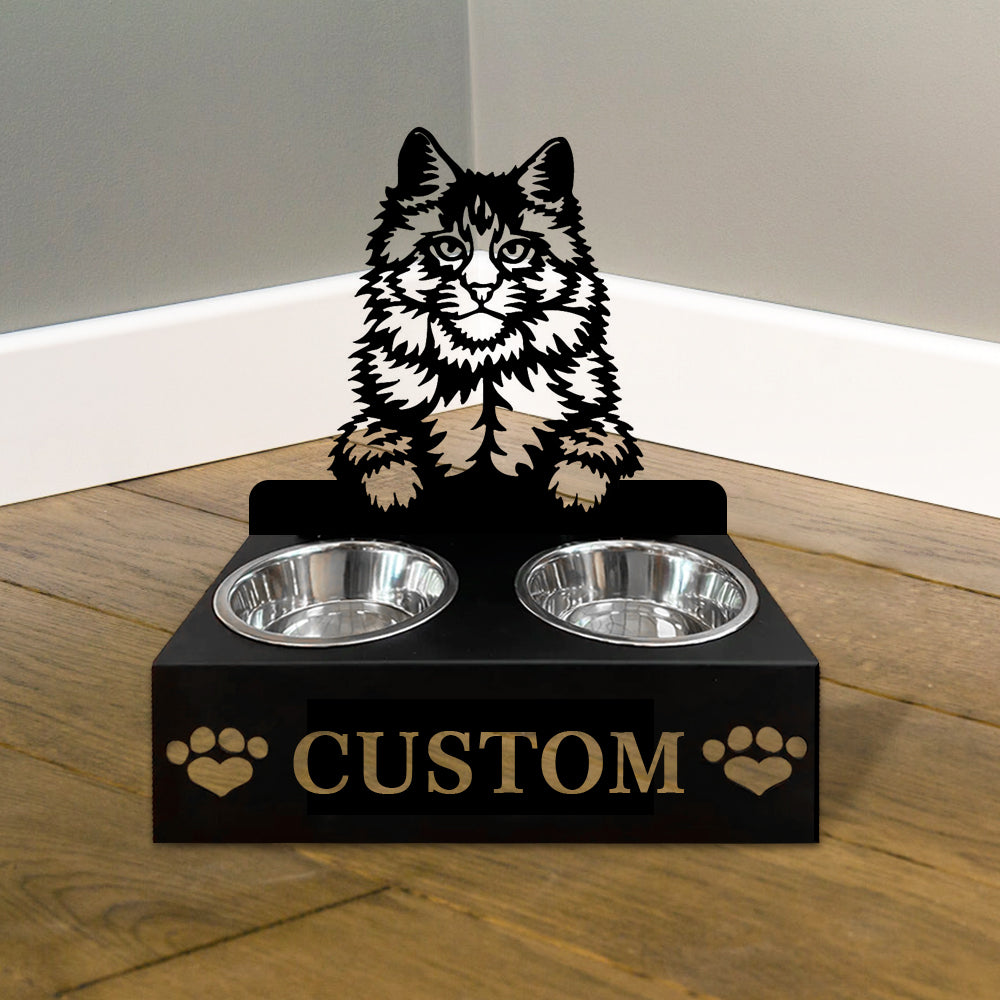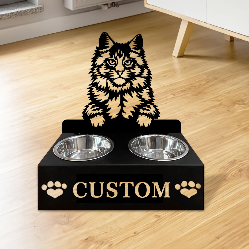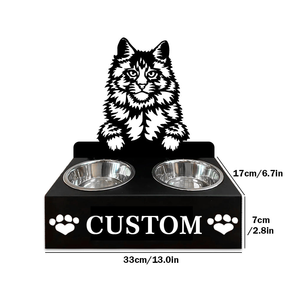 Main Coon Cat Personalized Name Pet Food Bowl Holder