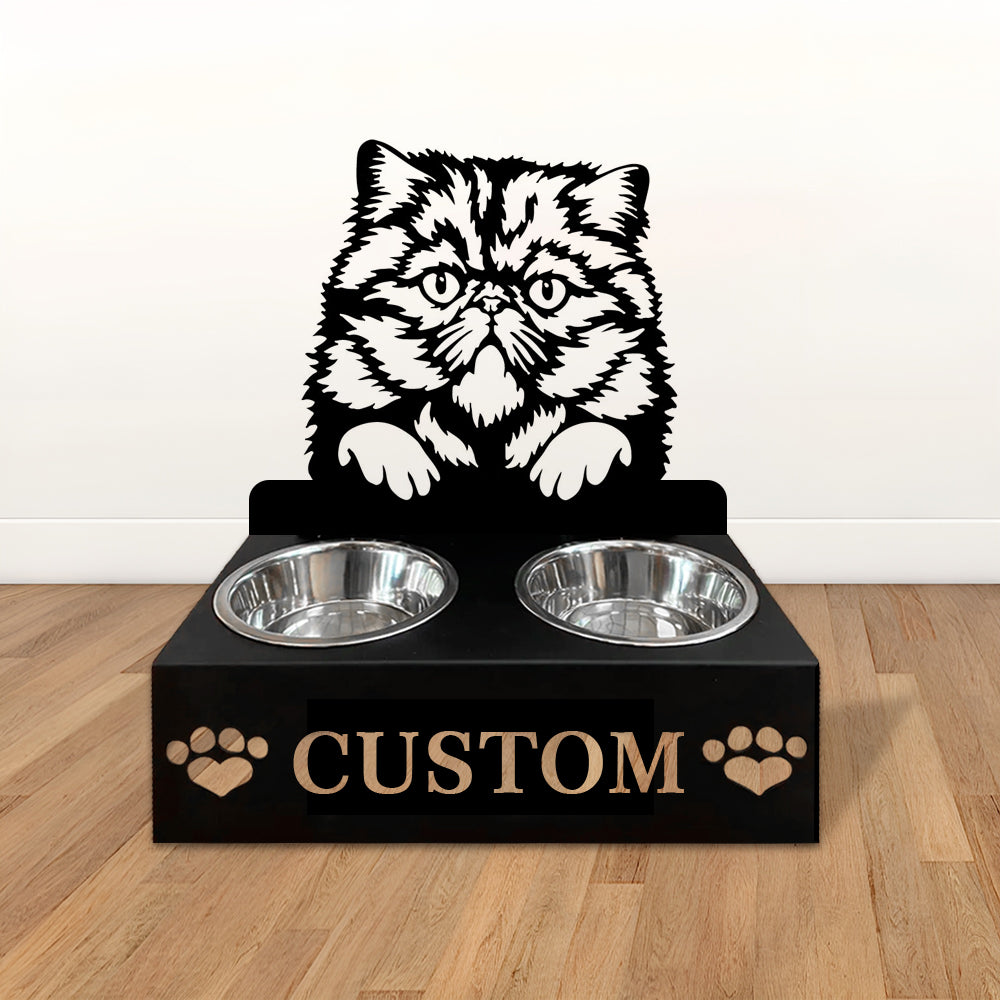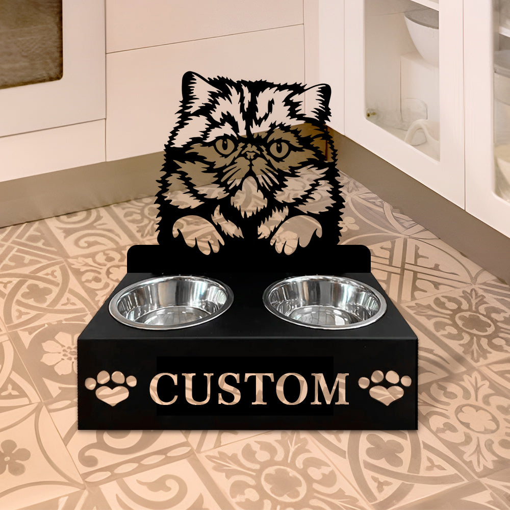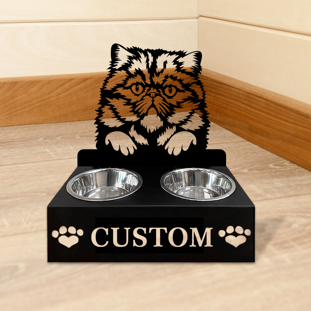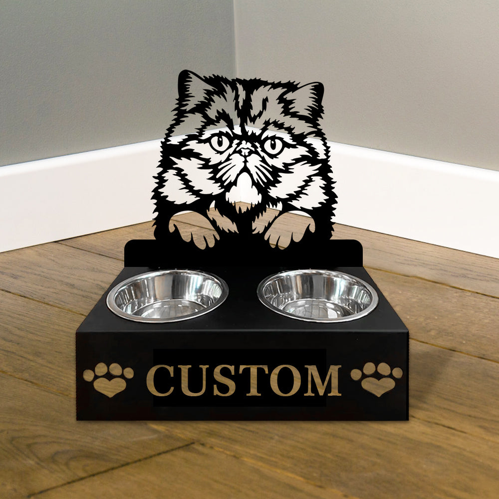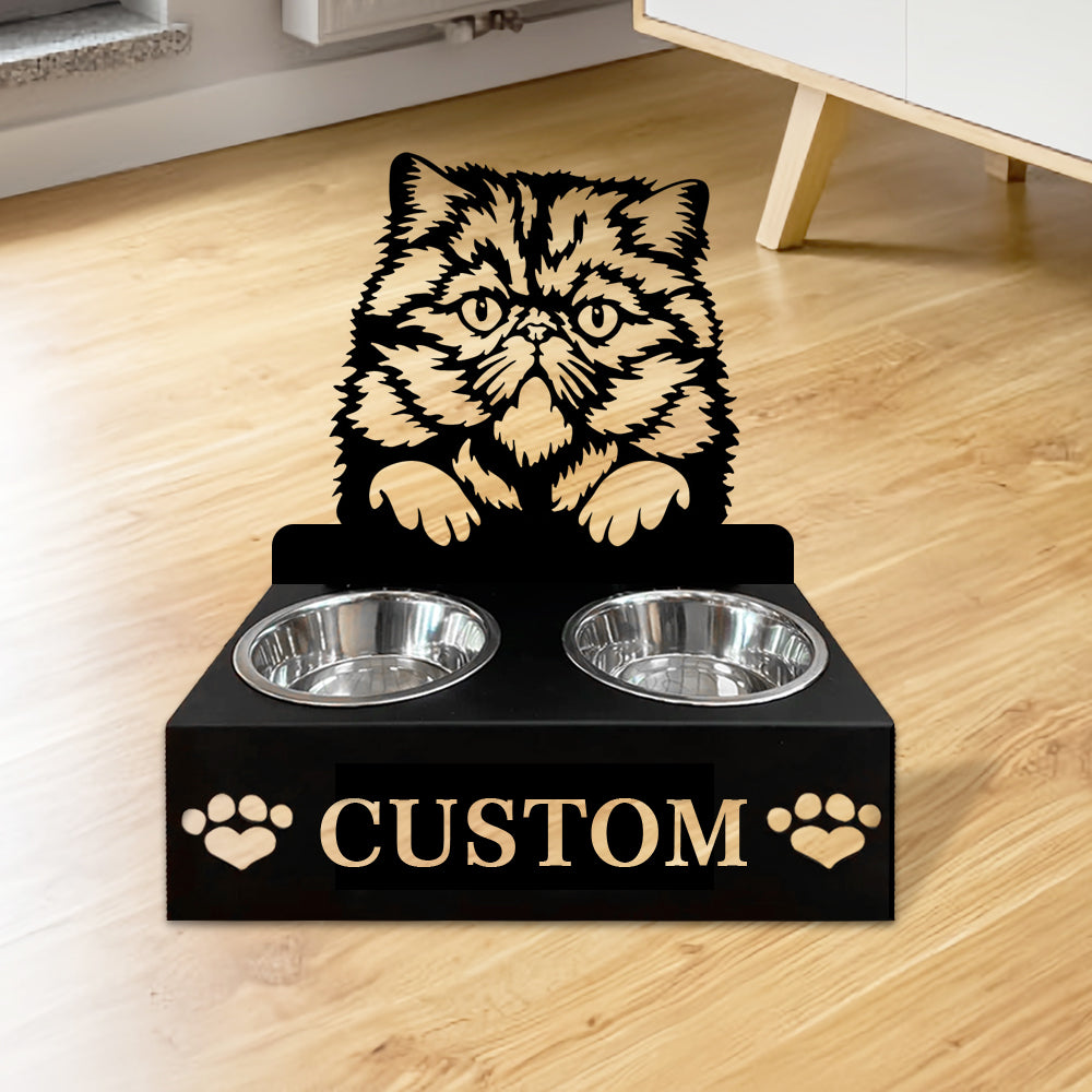 Persian Cat Personalized Name Pet Food Bowl Holder