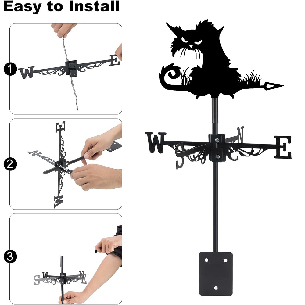 💕Creative design: This Weathervane is made of high-quality Stainless Steel. With stylish straight lines and satin black finishes. This anti-rust iron weather vane is decorated with exquisite patterns.