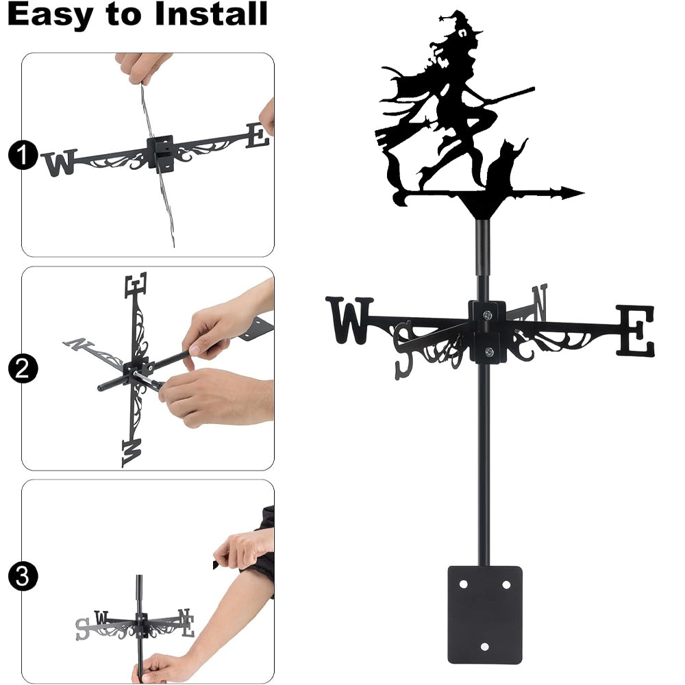 💕Creative design: This Weathervane is made of high-quality Stainless Steel. With stylish straight lines and satin black finishes. This anti-rust iron weather vane is decorated with exquisite patterns.