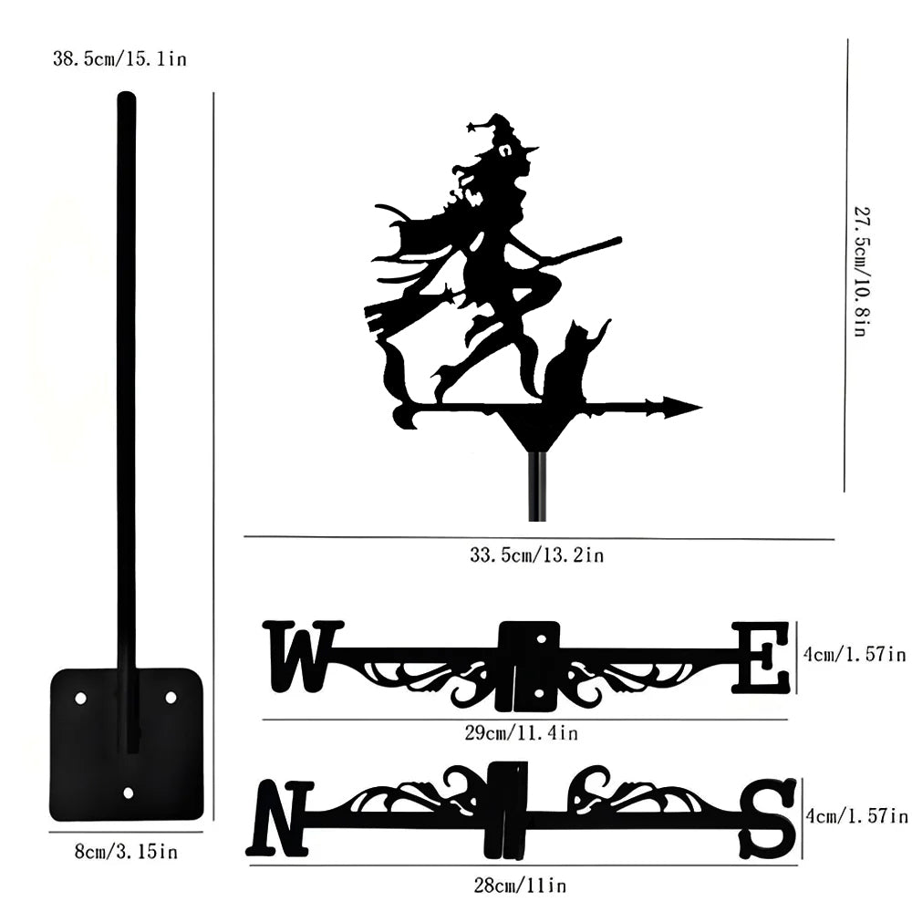 Halloween Elegant Witch and Cat Stainless Steel Weathervane