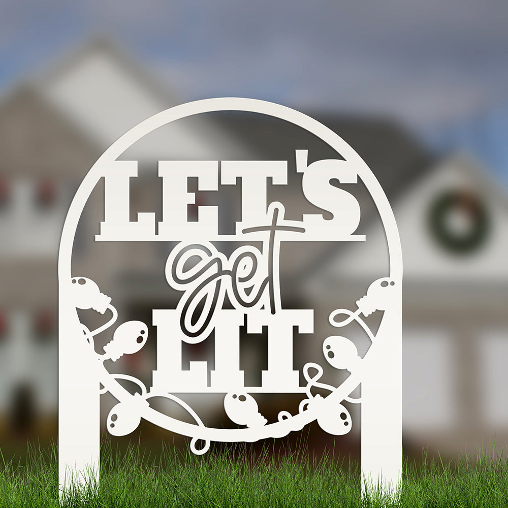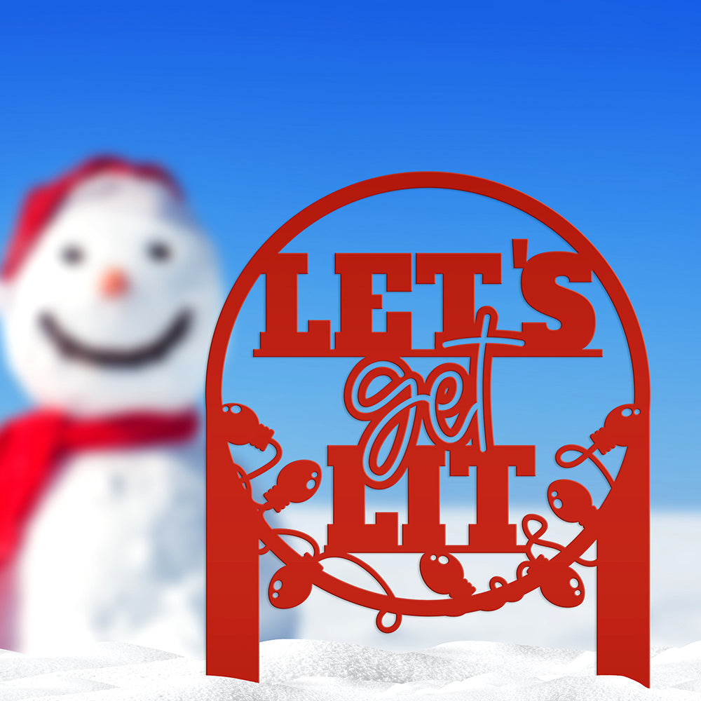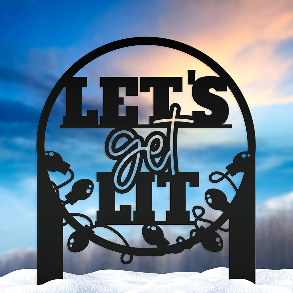 Lets Get Lit Christmas Metal Sign Outdoor Yard Decoration