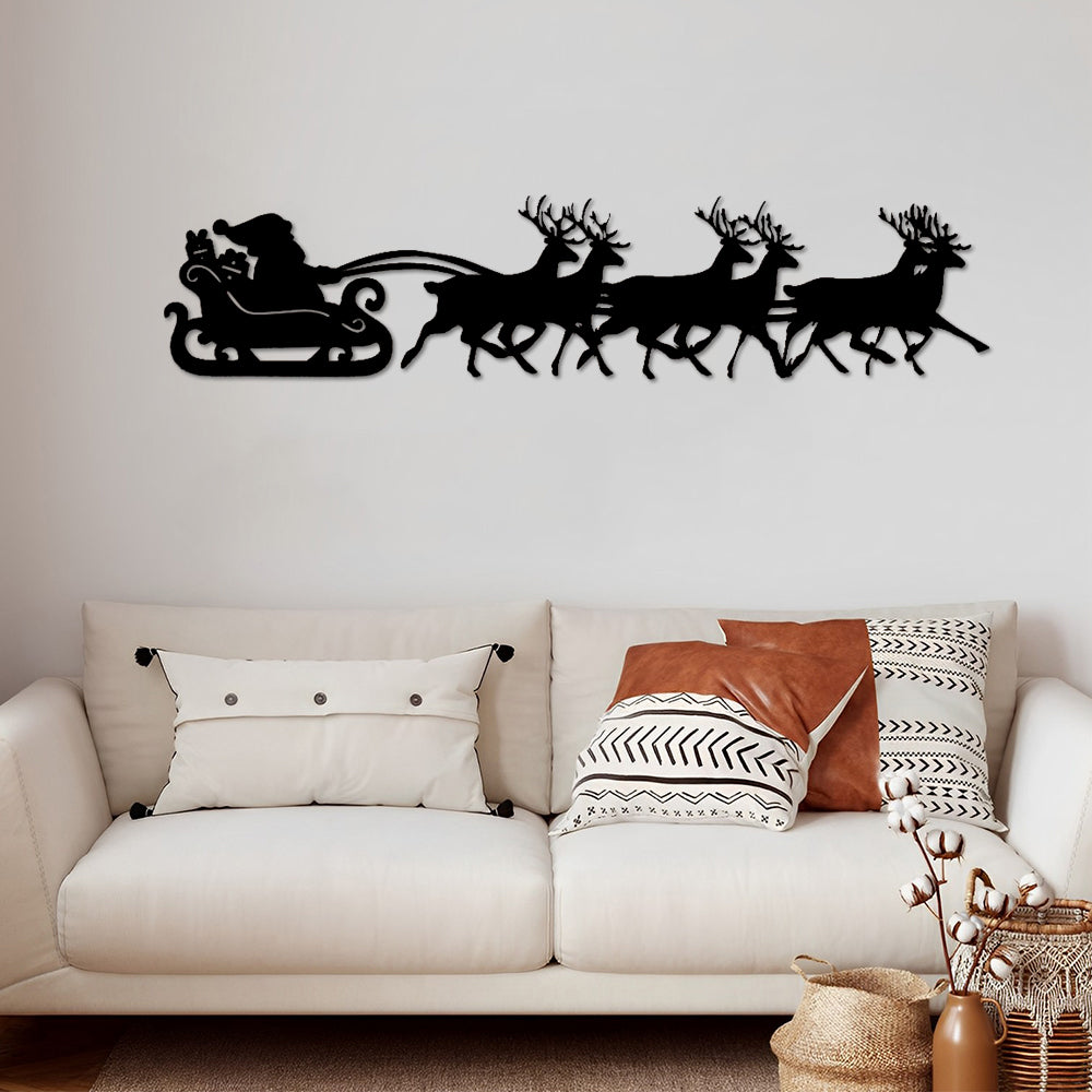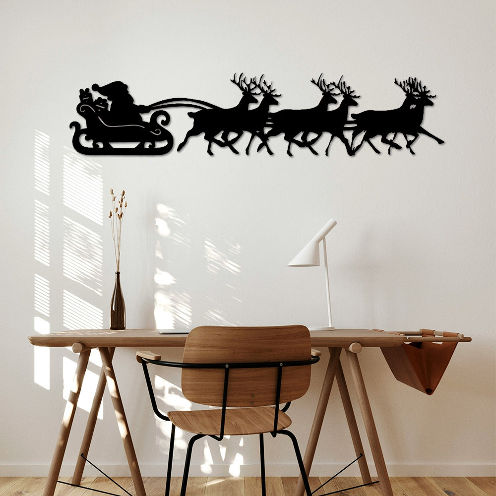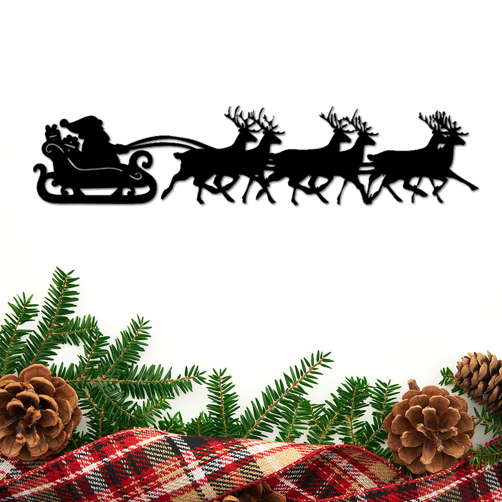 Santa Claus and Reindeer Christmas Metal Wall Art Decoration