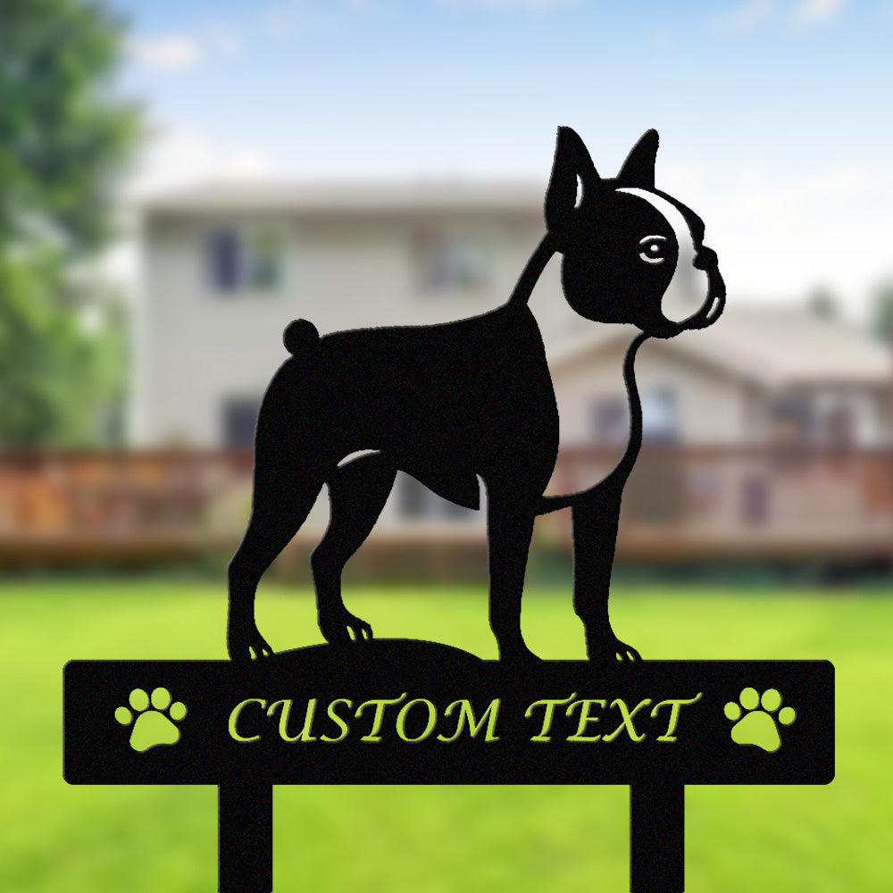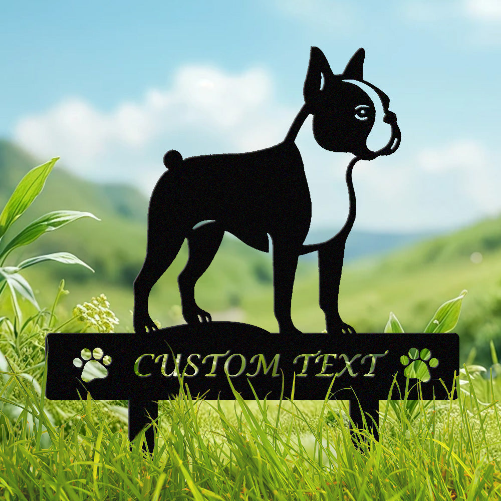Boston Terrier Custom Dog Silhouette Metal Yard Stake