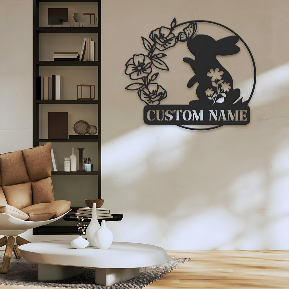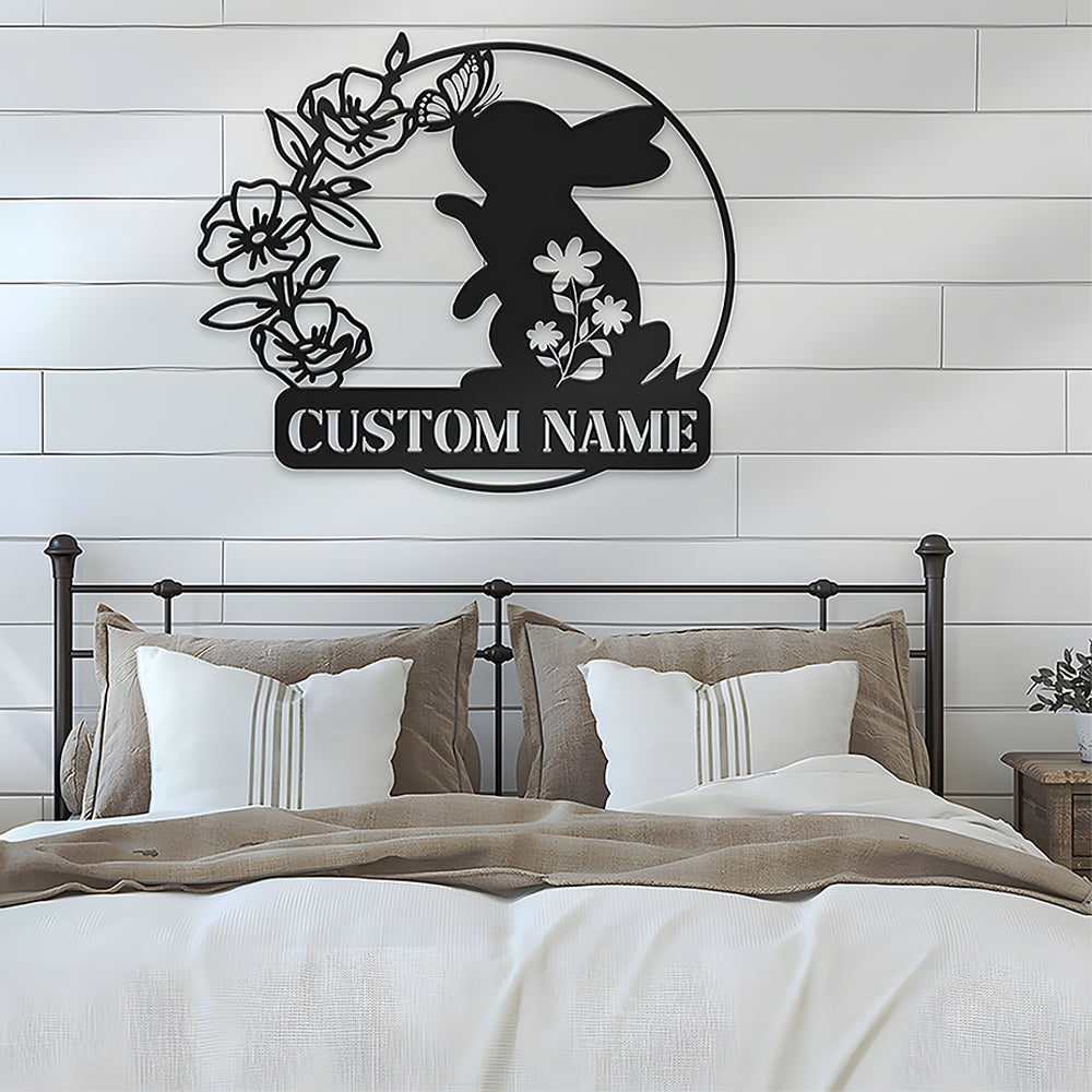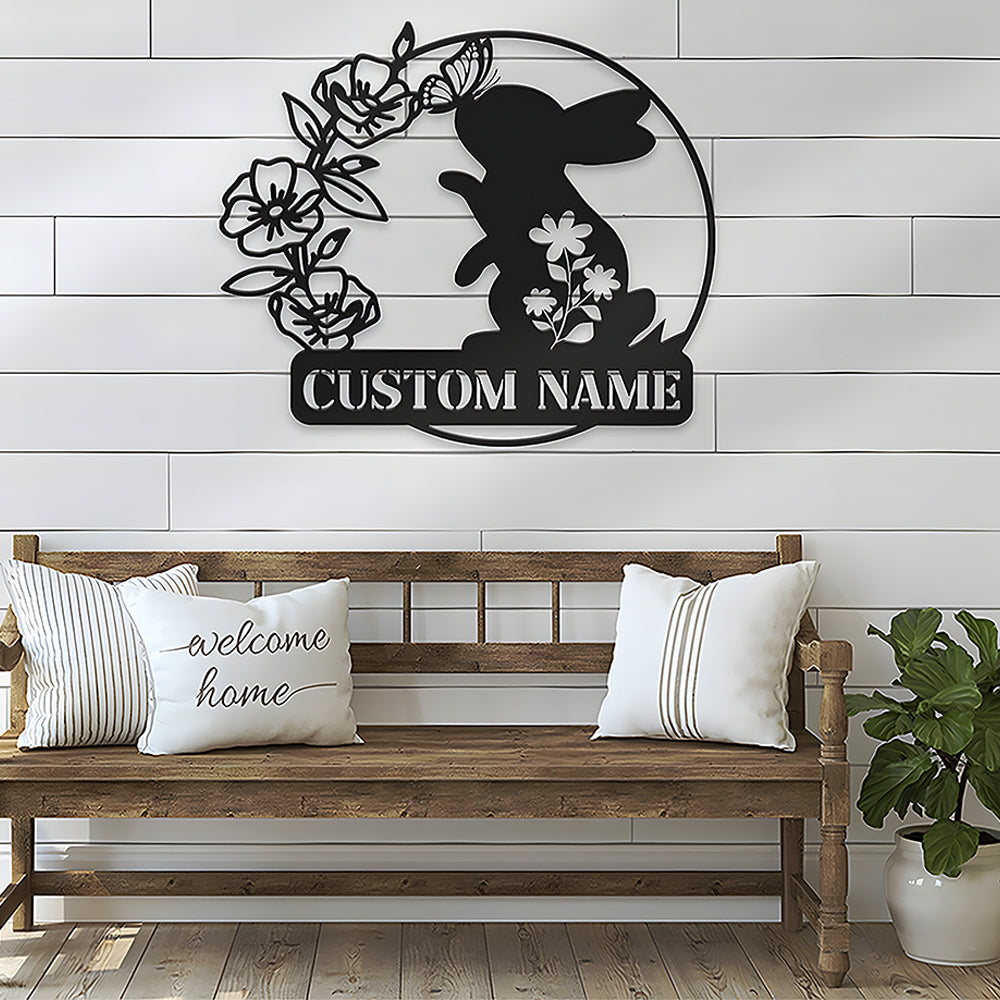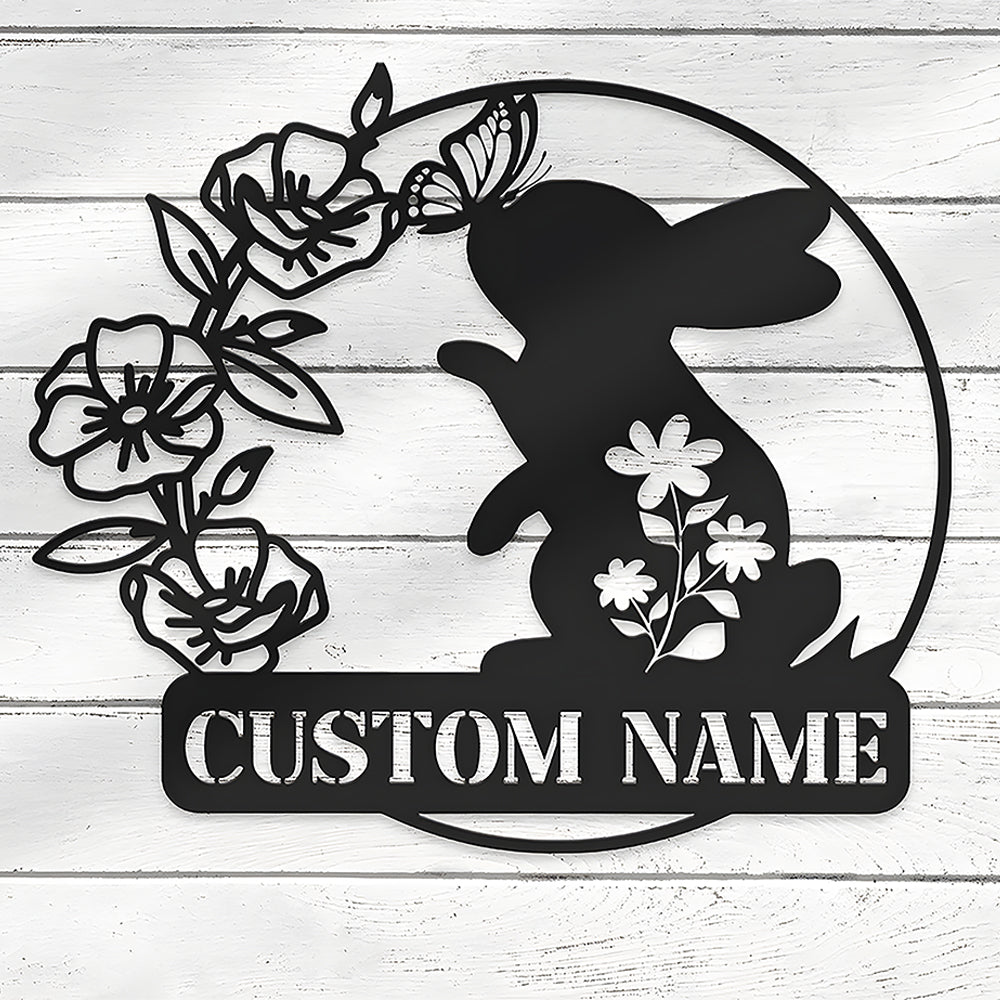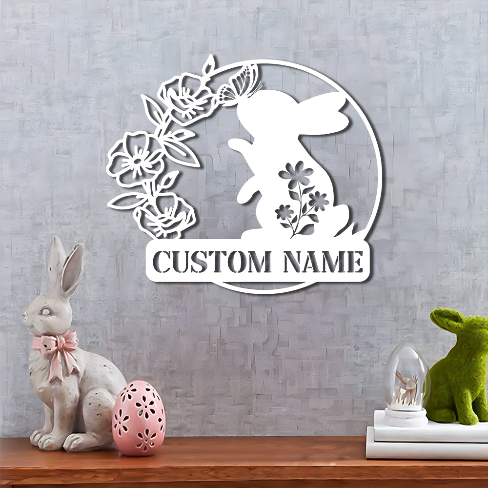 Custom Happy Easter Rabbit Butterfly Metal Sign Metal Wall Art Decoration