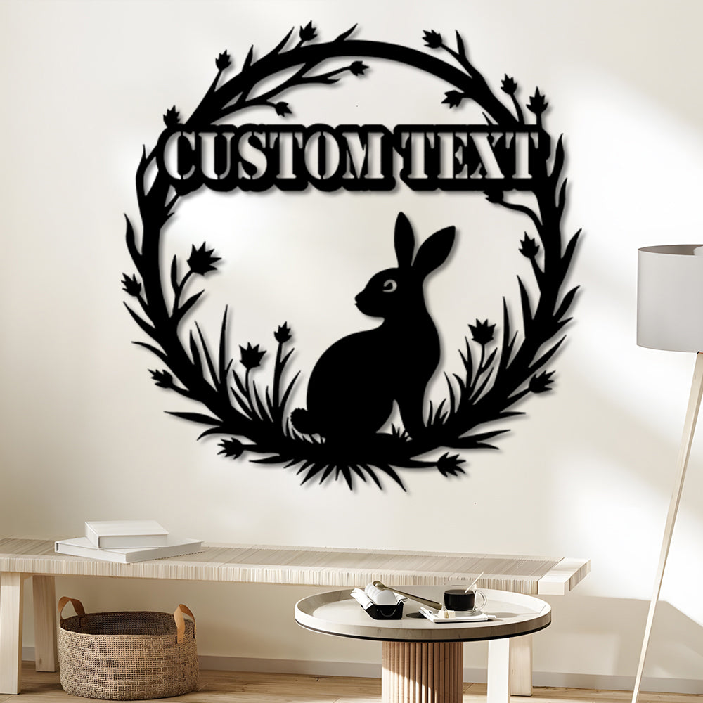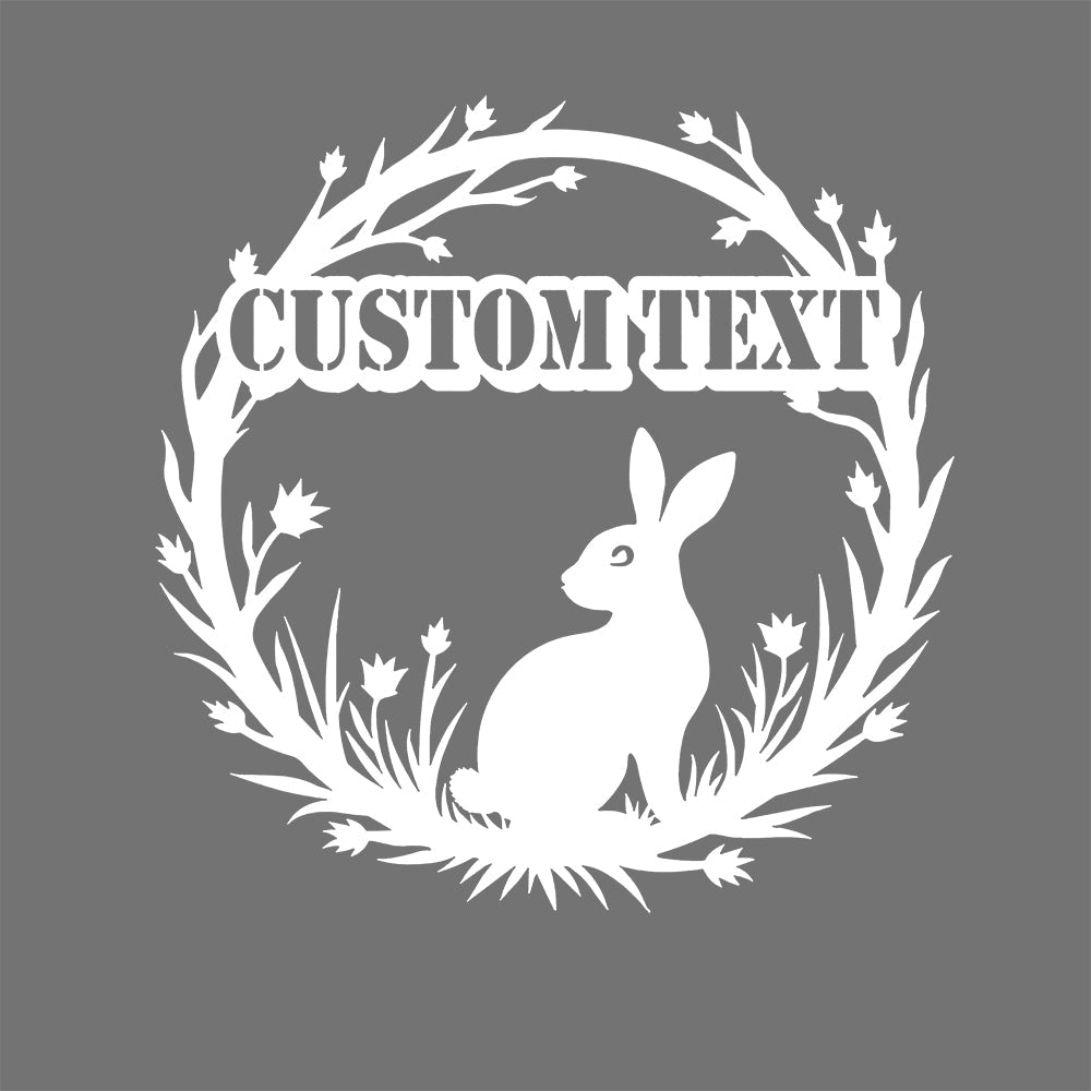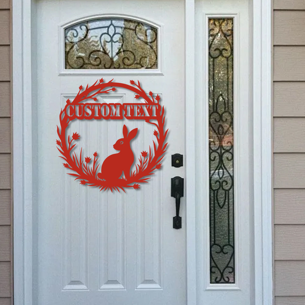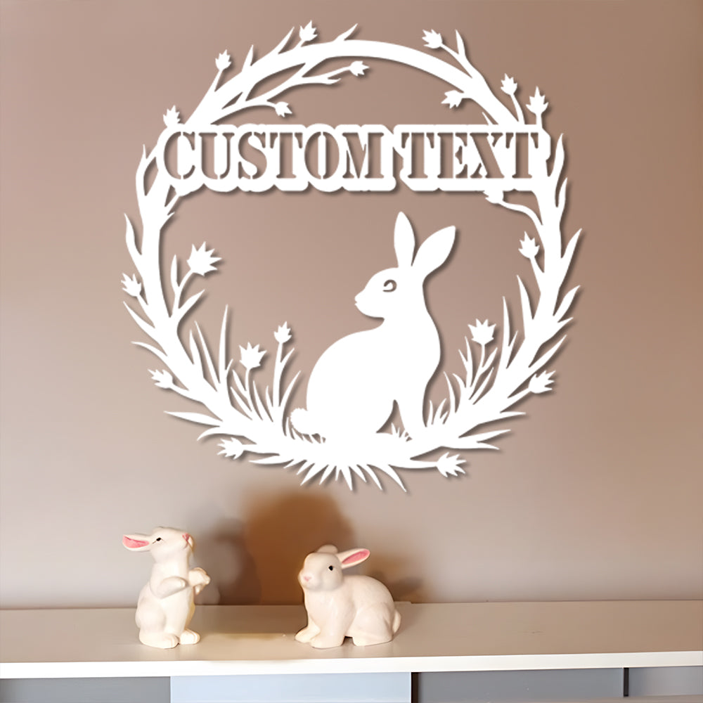 Custom Text Easter Bunny Wreath Sign Metal Wall Art Decoration