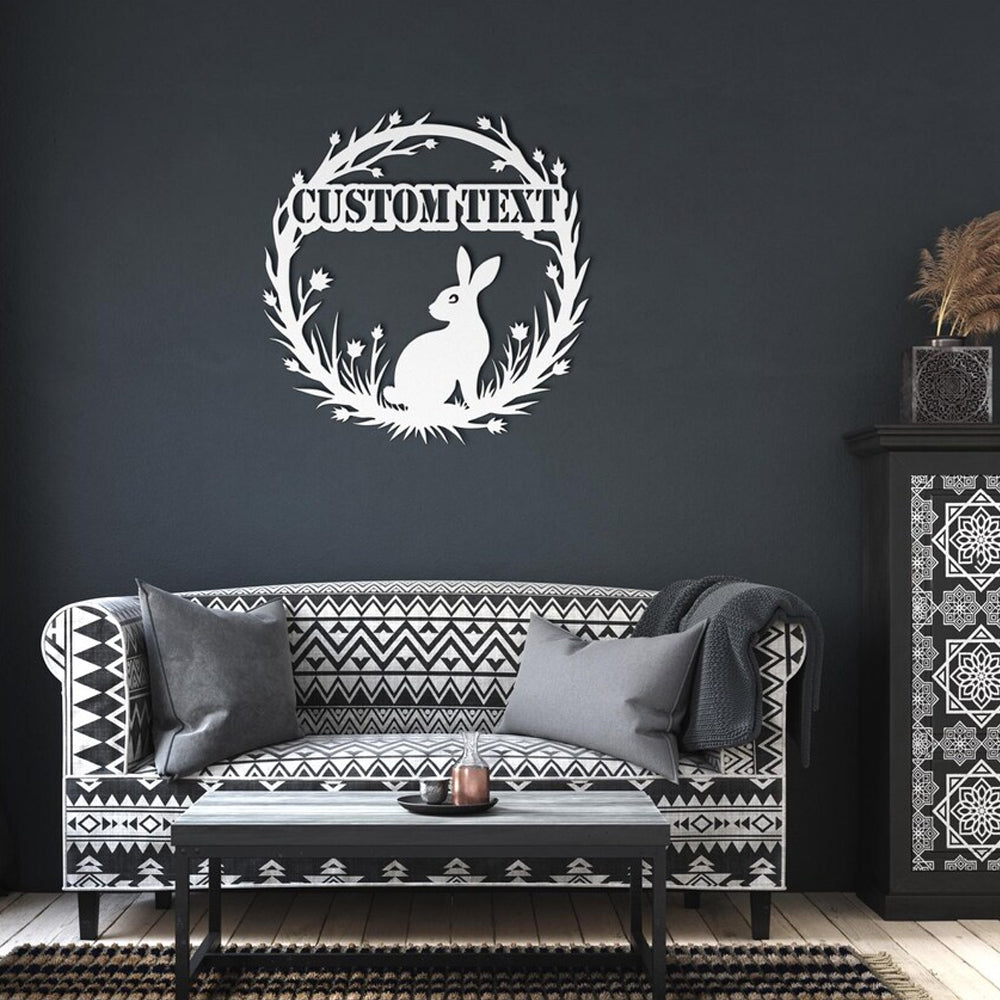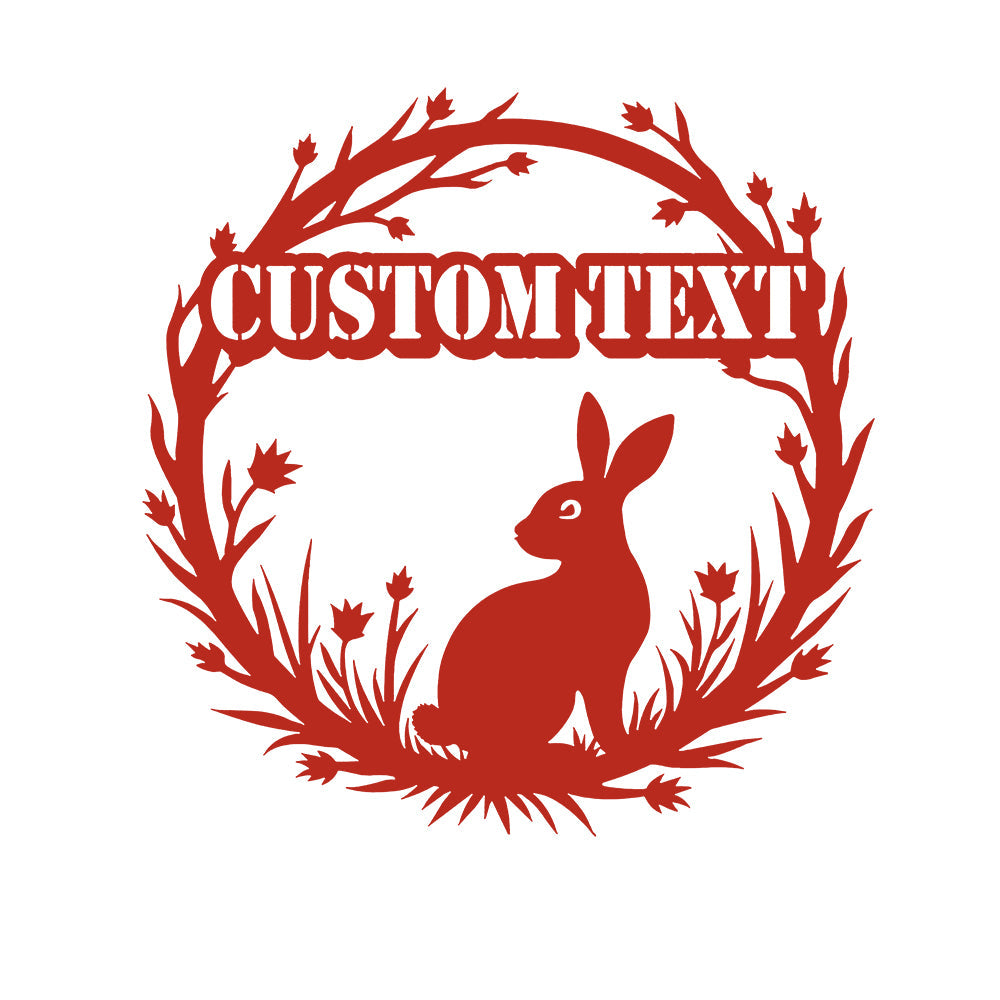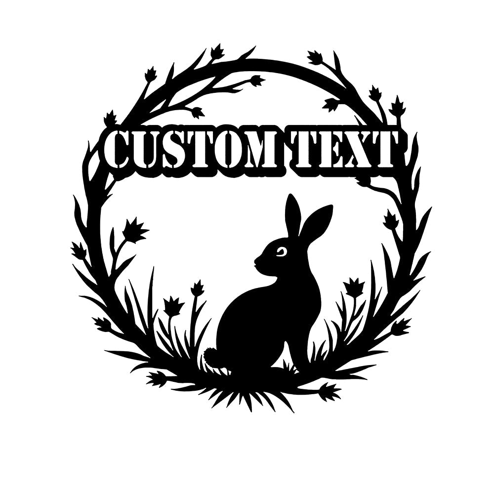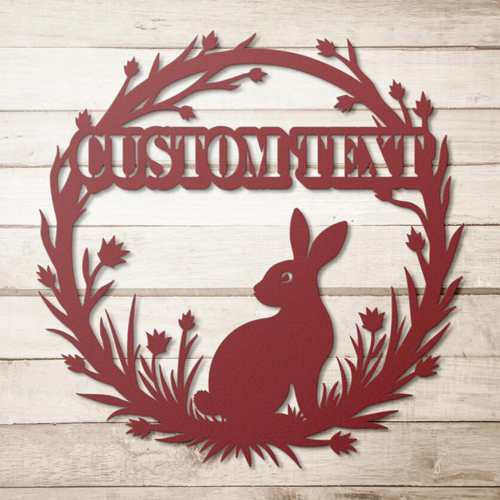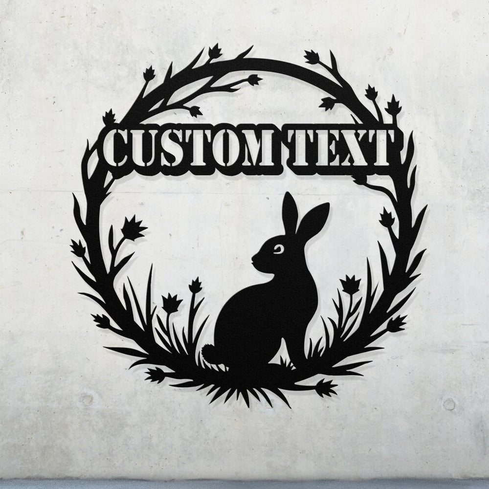 Custom Text Easter Bunny Wreath Sign Metal Wall Art Decoration