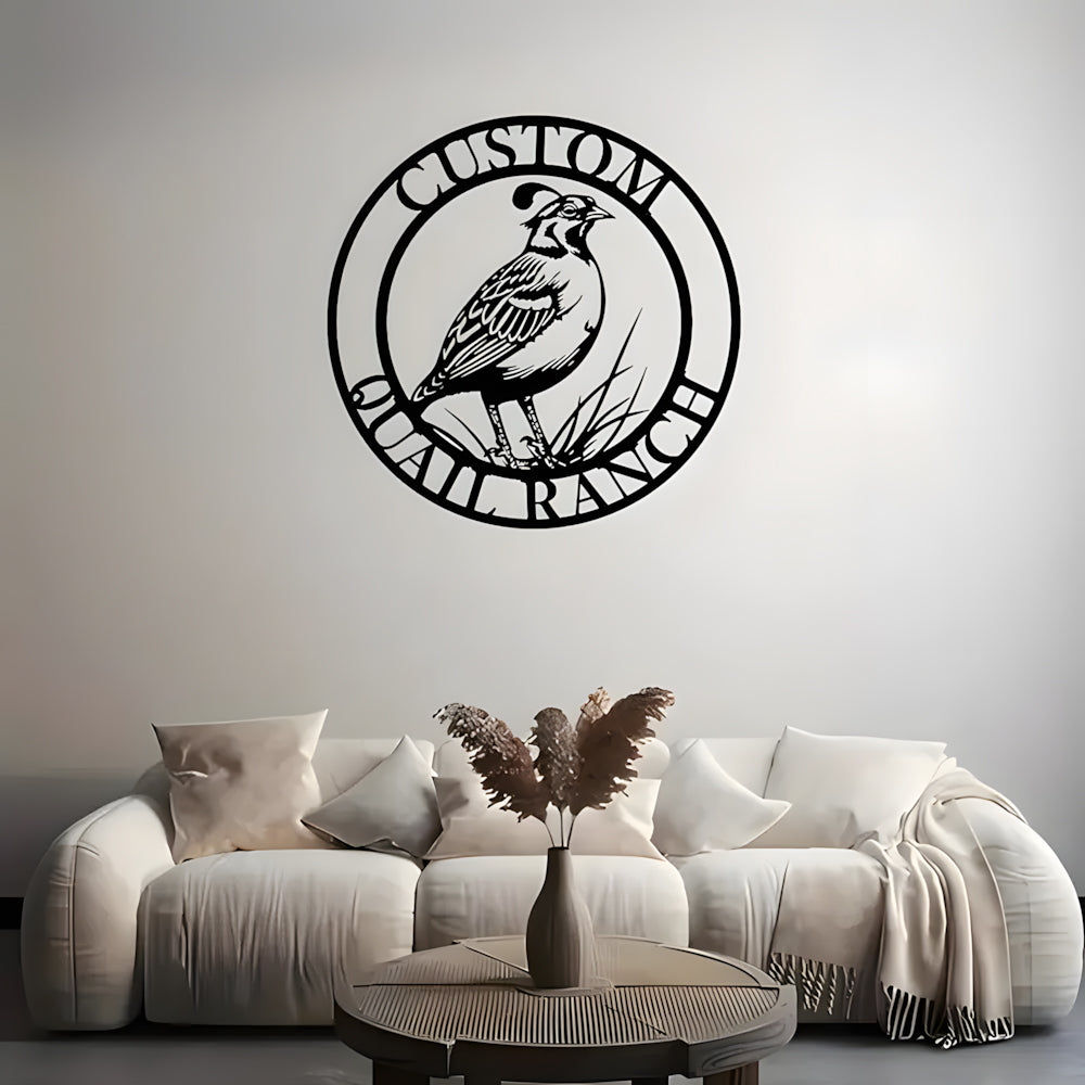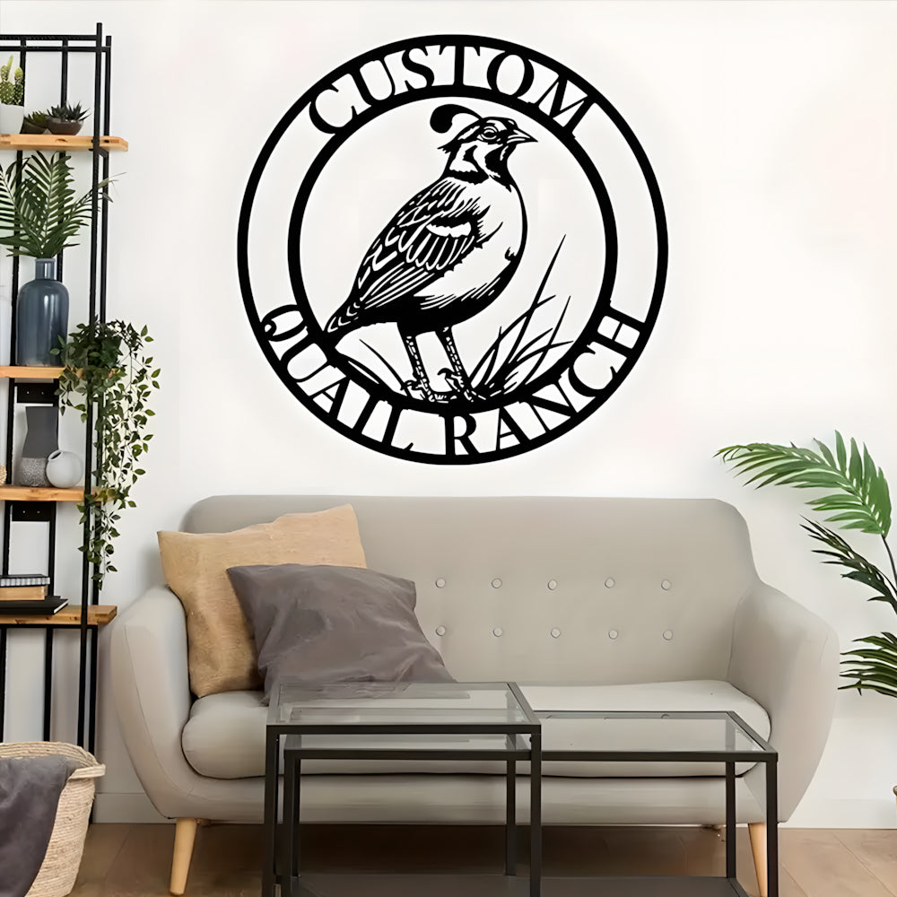 Custom Family Name "Quail Ranch" Sign Metal Wall Art Decoration