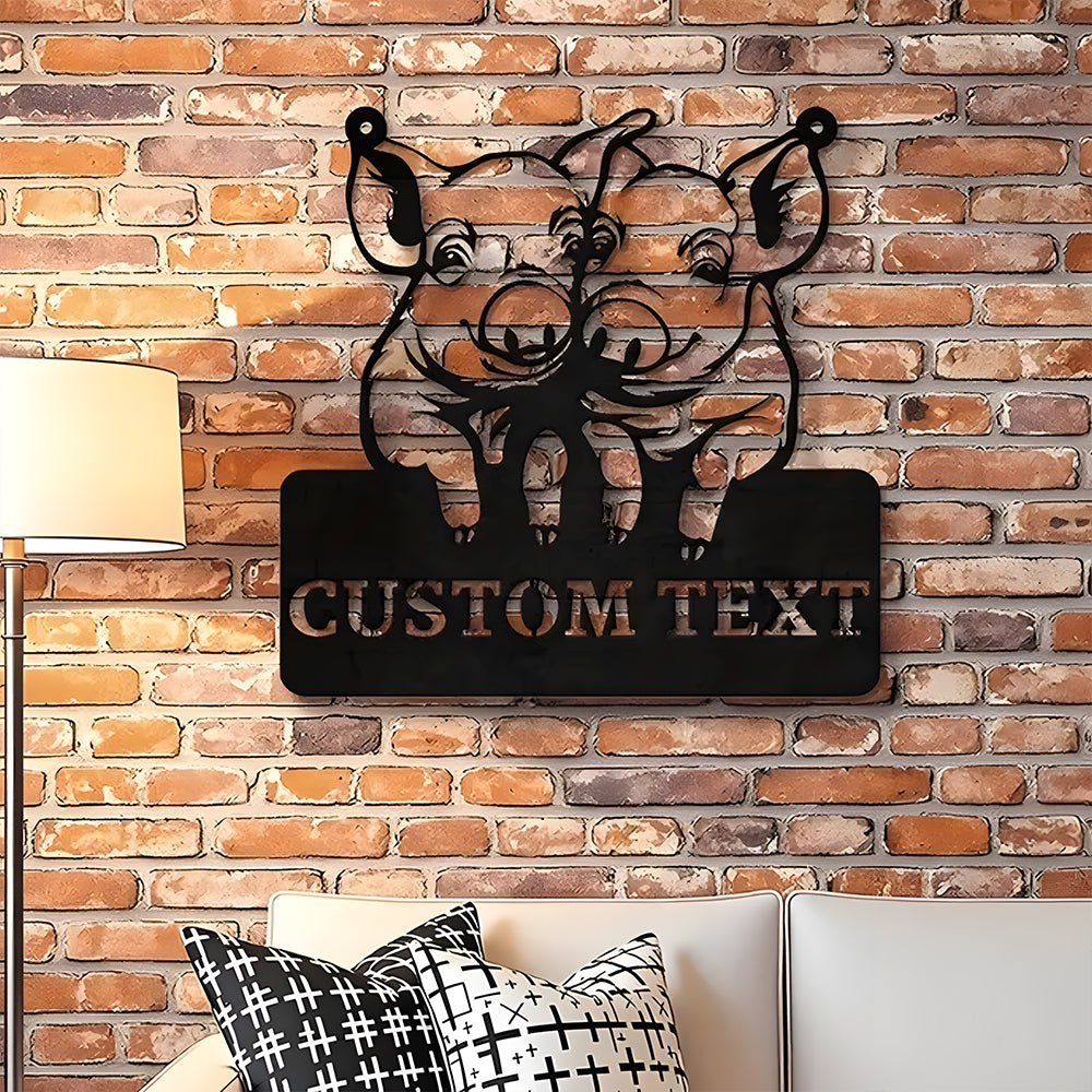 Customizable Pig Welcome Sign Metal Wall Art Decoration