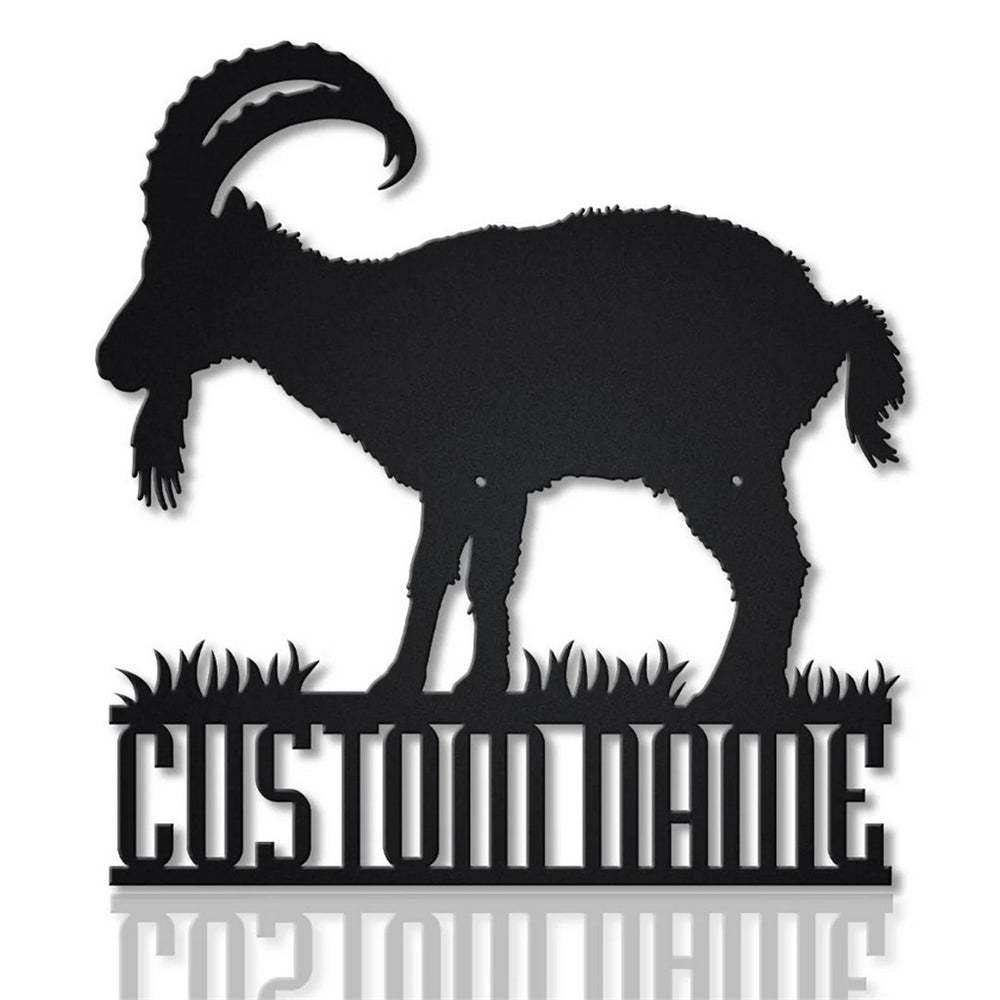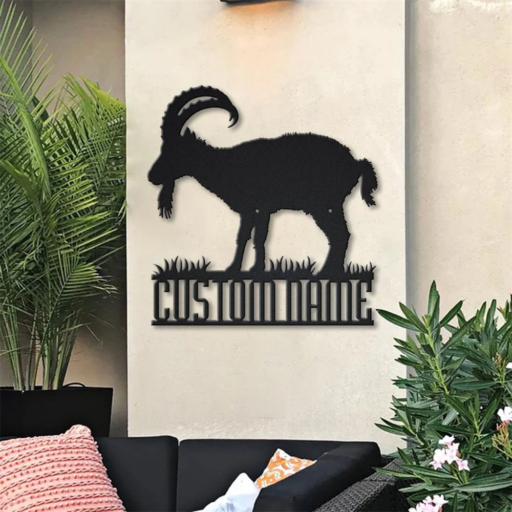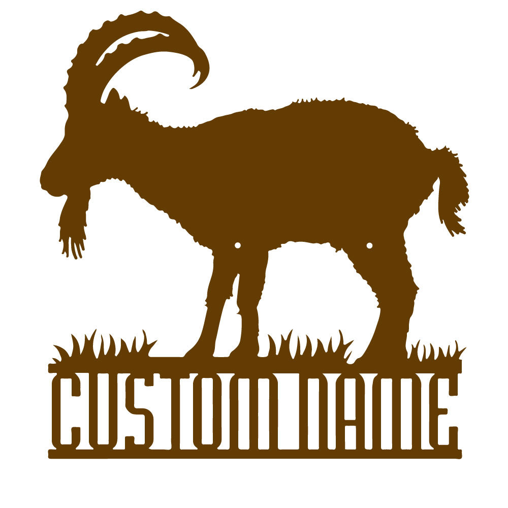 Alpine Ibex Goat Metal Art Personalized Metal Name Sign
