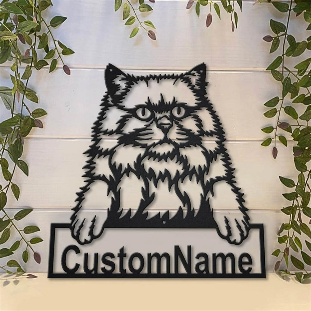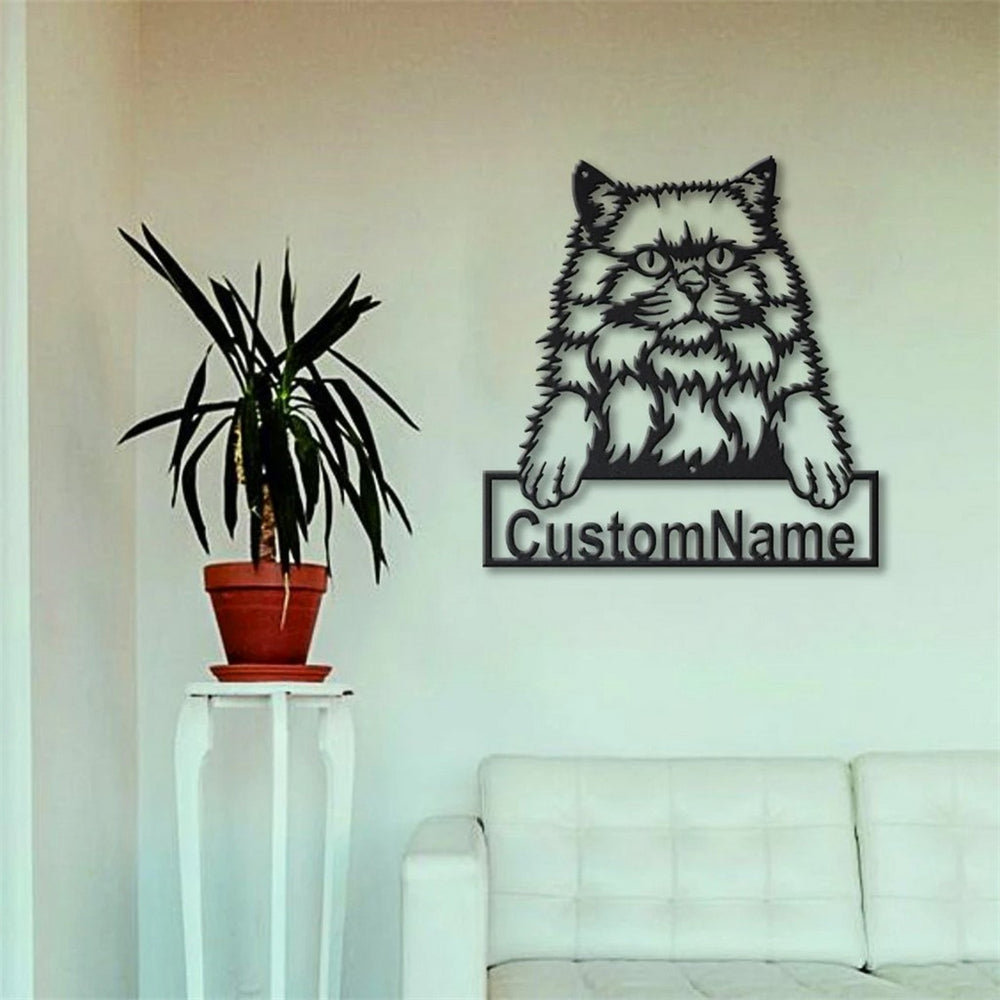British Longhair Cat Metal Art Personalized Metal Name Sign