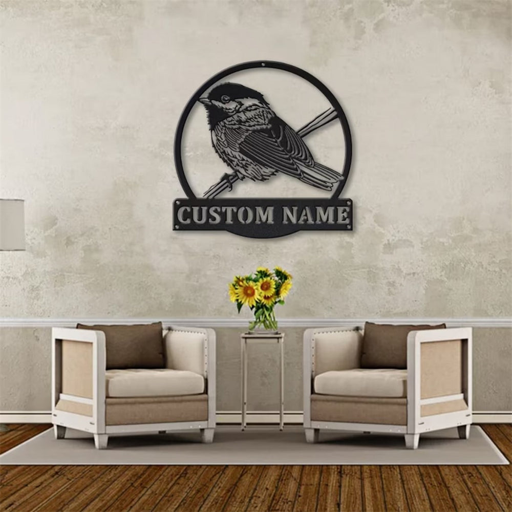 Chickadee Bird Metal Art Personalized Metal Name Sign