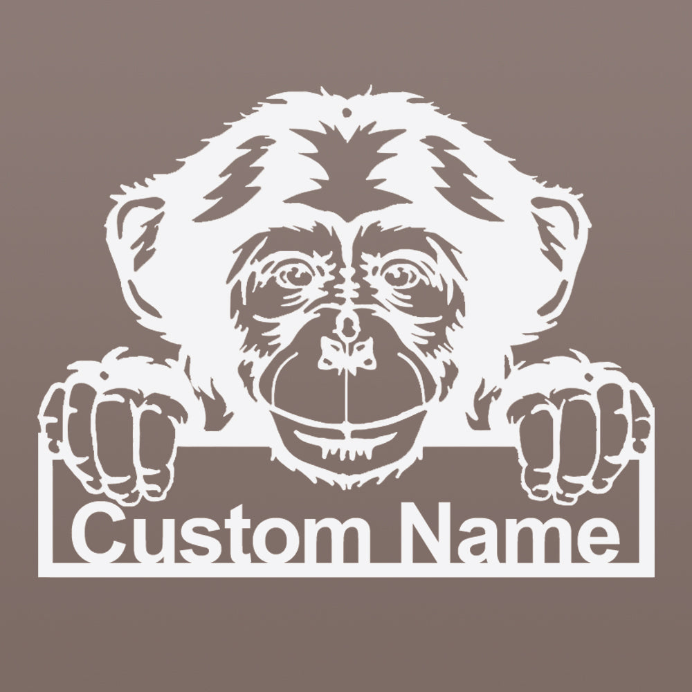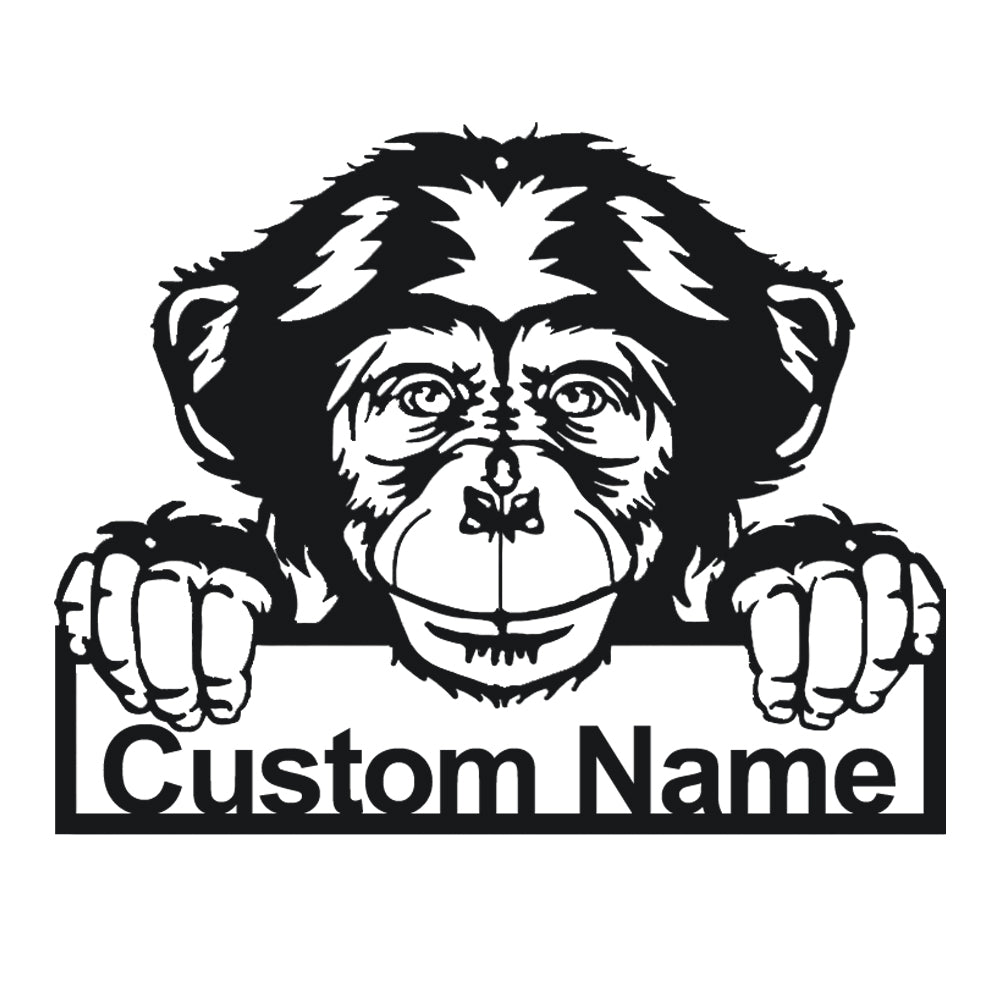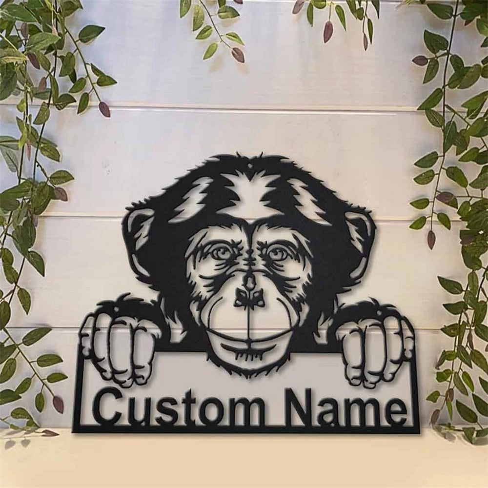 Chimpanzee Monkey Metal Art Personalized Metal Name Sign