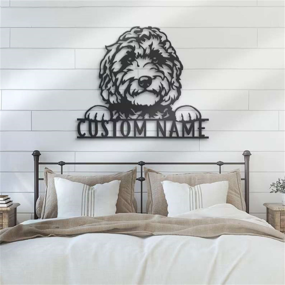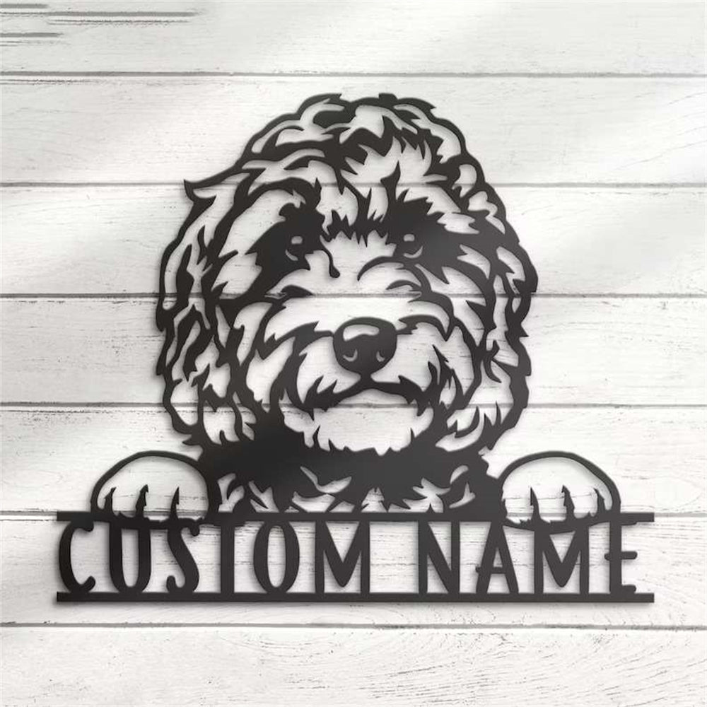 Custom Golden Doodle Metal Wall Art Personalized Labradoodle Name Sign