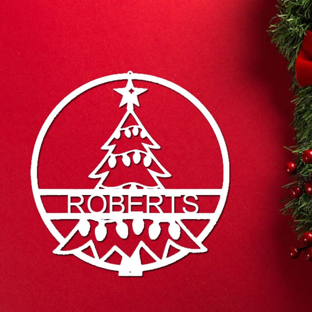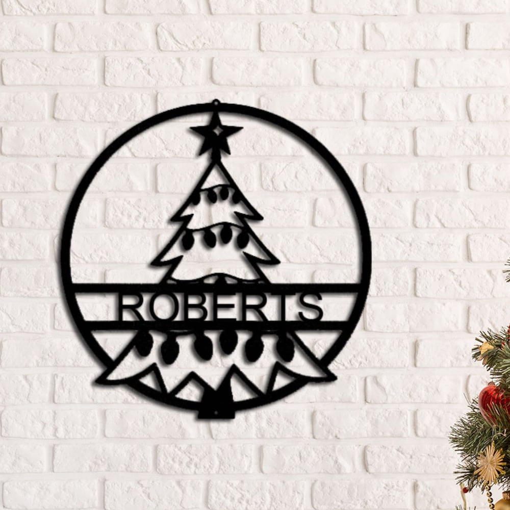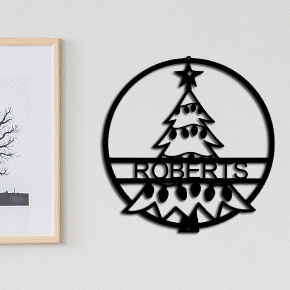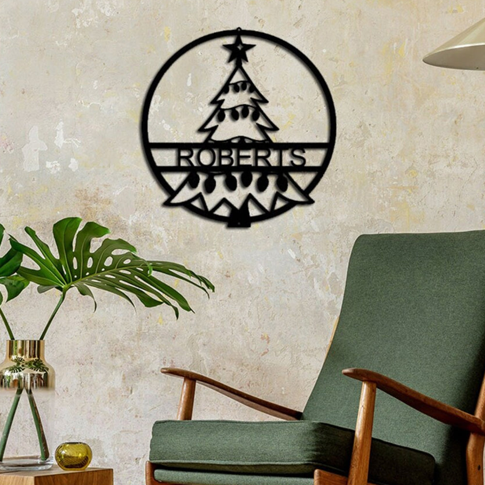 Custom Name Personalized Christmas Tree Metal Wall Art Decoration