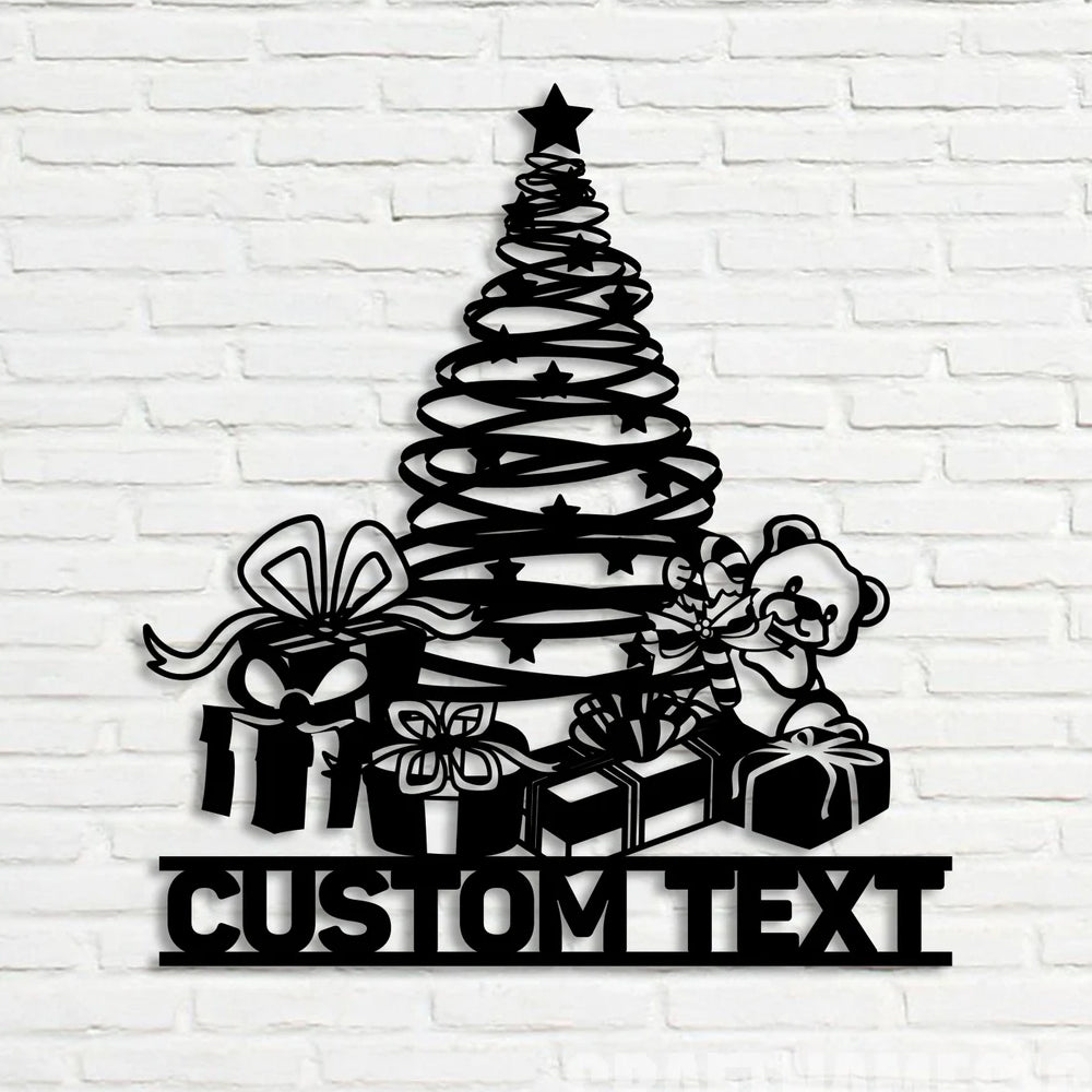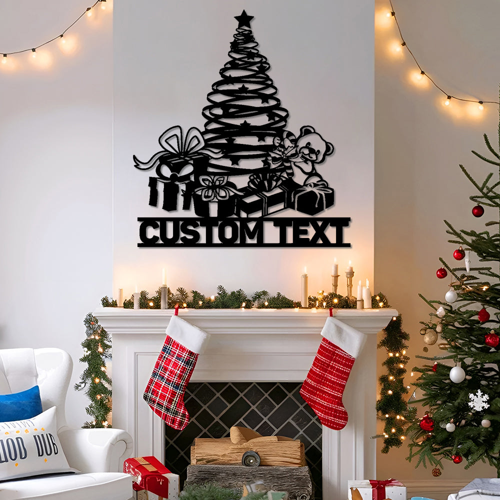 Custom Name Personalized Christmas Tree Metal Wall Art Decoration