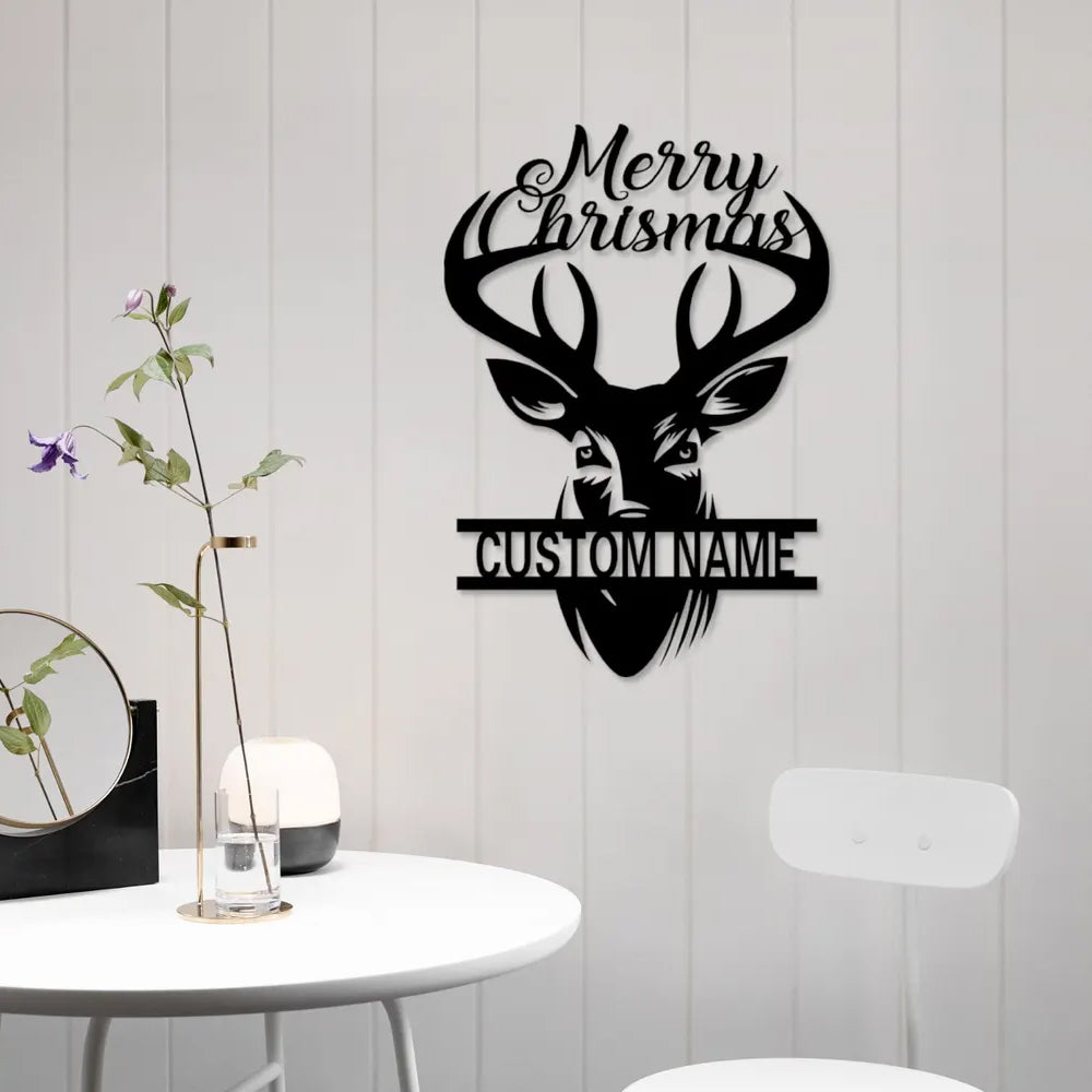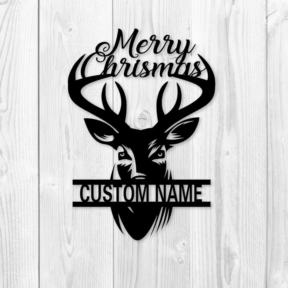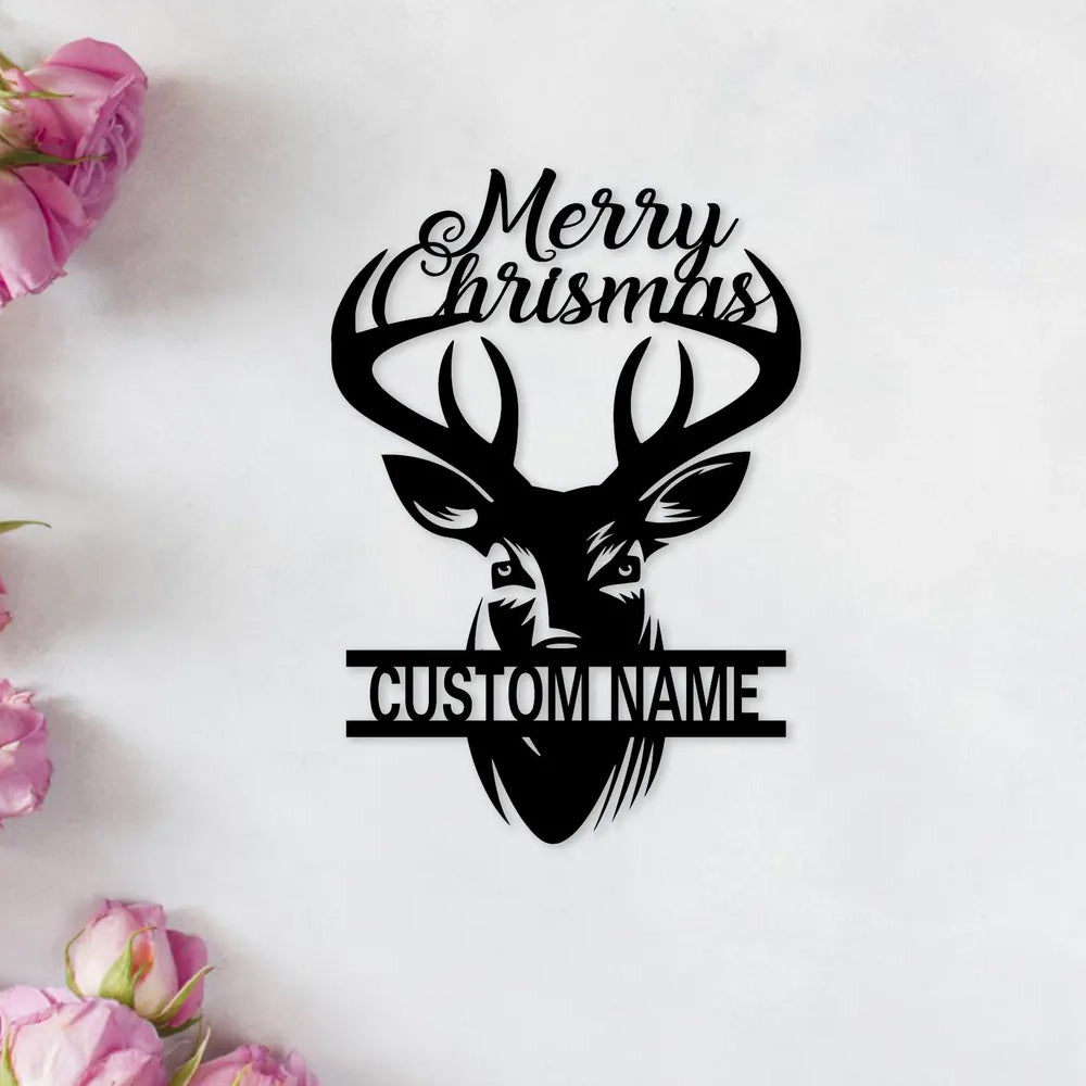 Custom Name Personalized Deer Christmas Metal Wall Art Decoration
