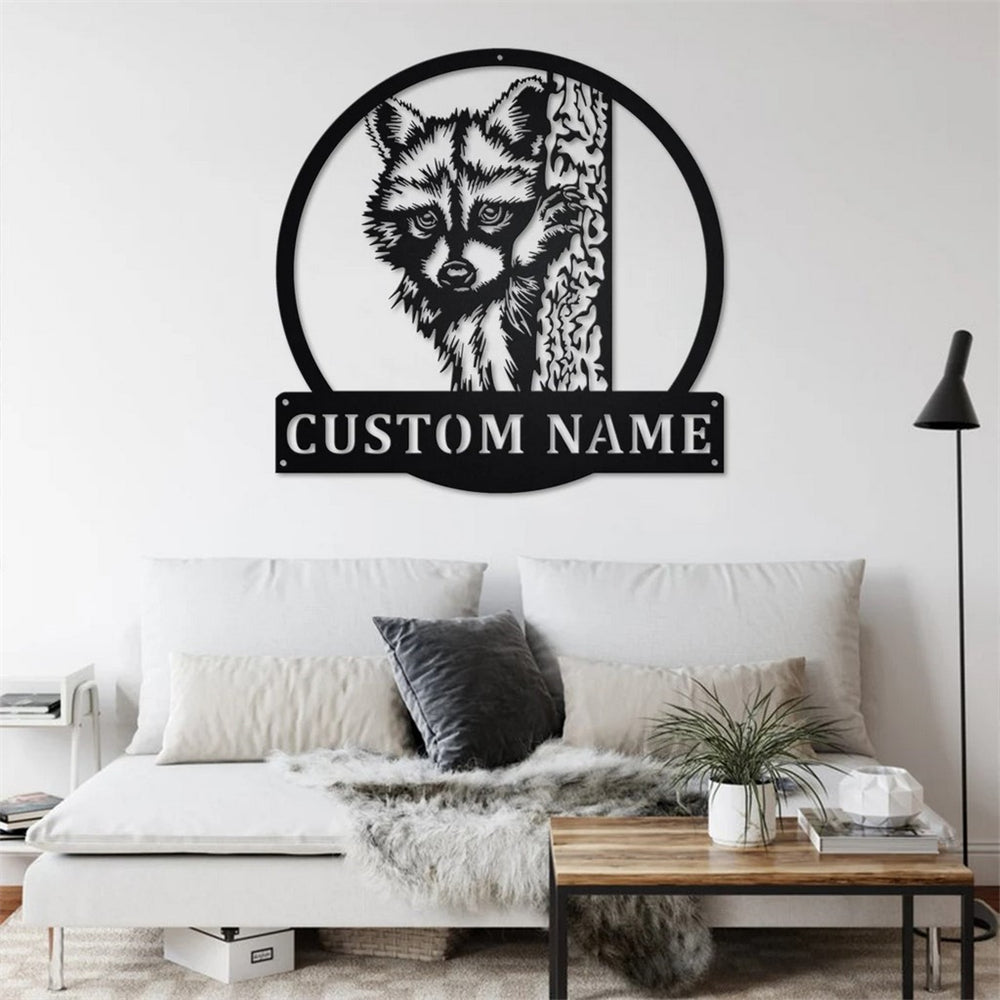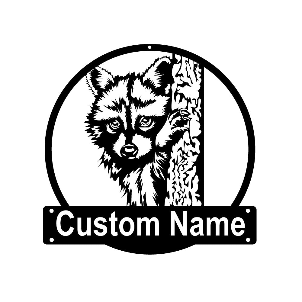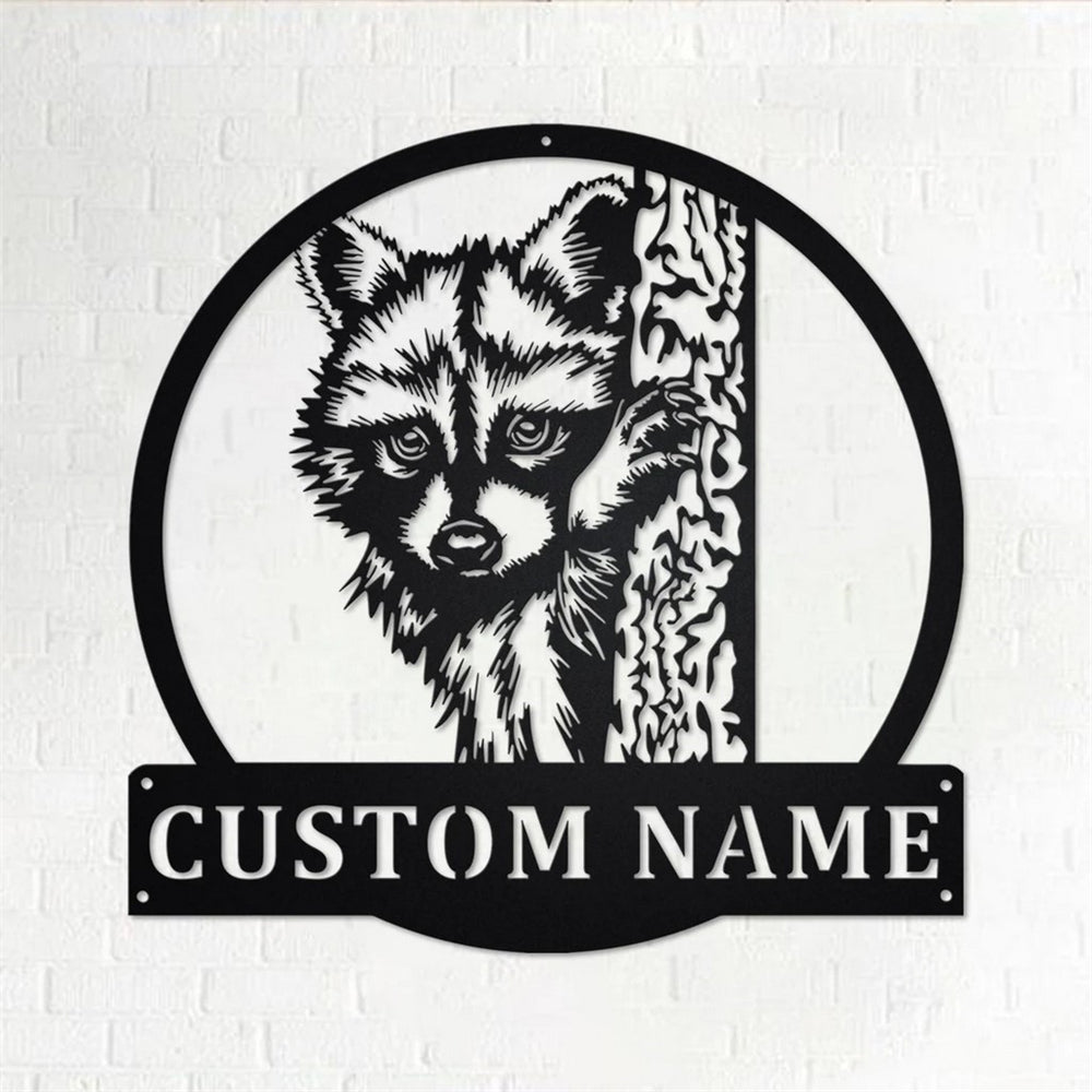 Custom Raccoon Metal Art Personalized Metal Name Sign