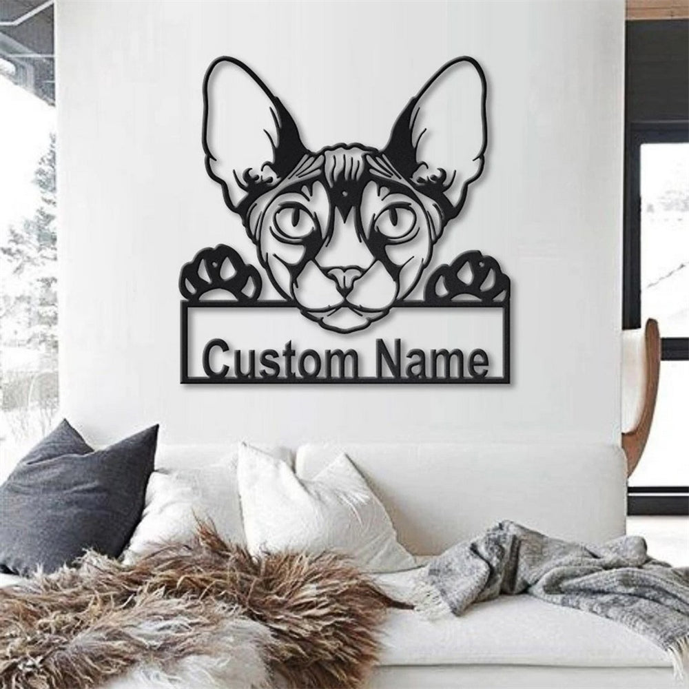 Donskoy Cat Metal Art Personalized Metal Name Sign