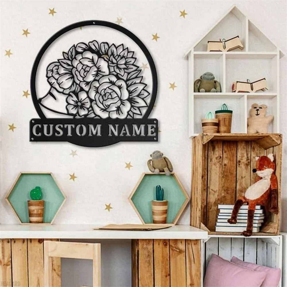 Floral Hedgehog Metal Art Personalized Metal Name Sign