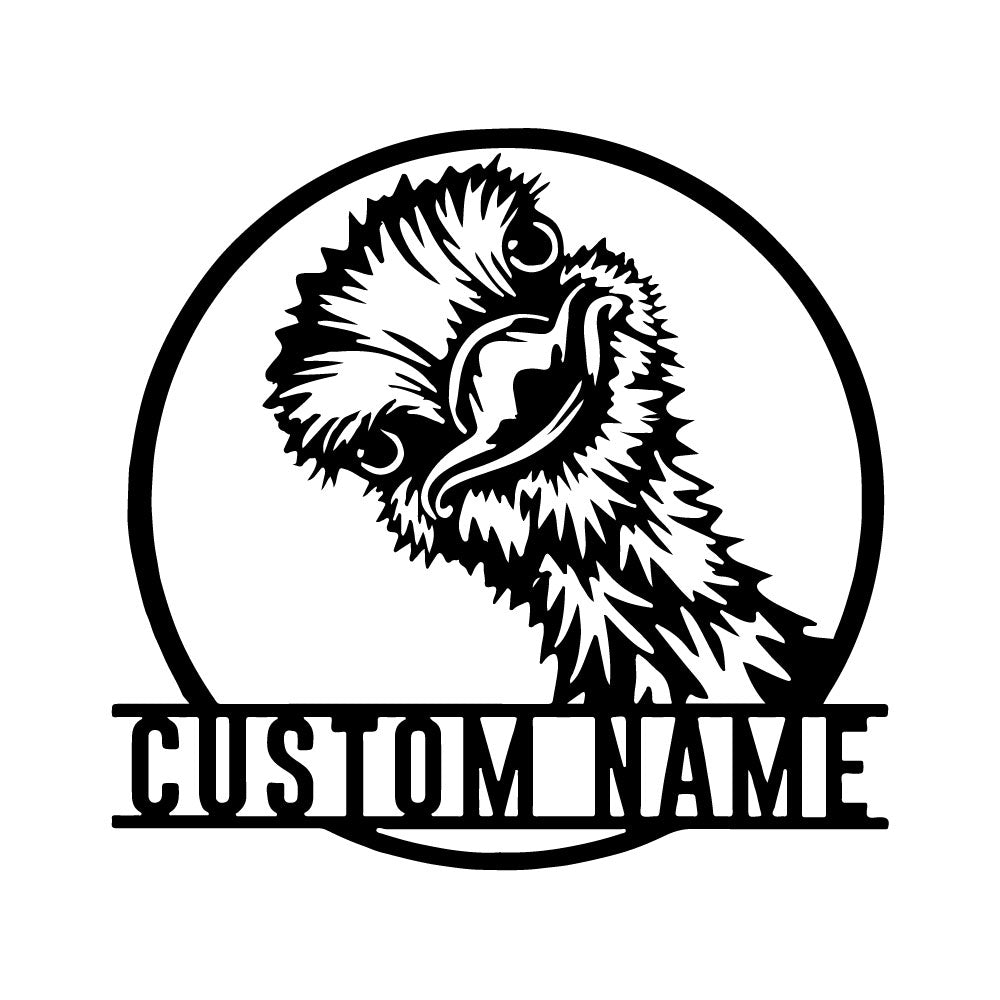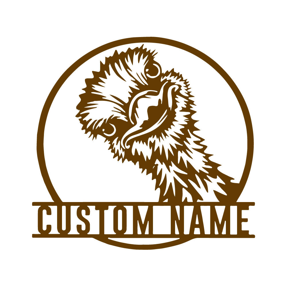 Funny Peeking Ostrick Metal Wall Art Personalized Metal Name Sign