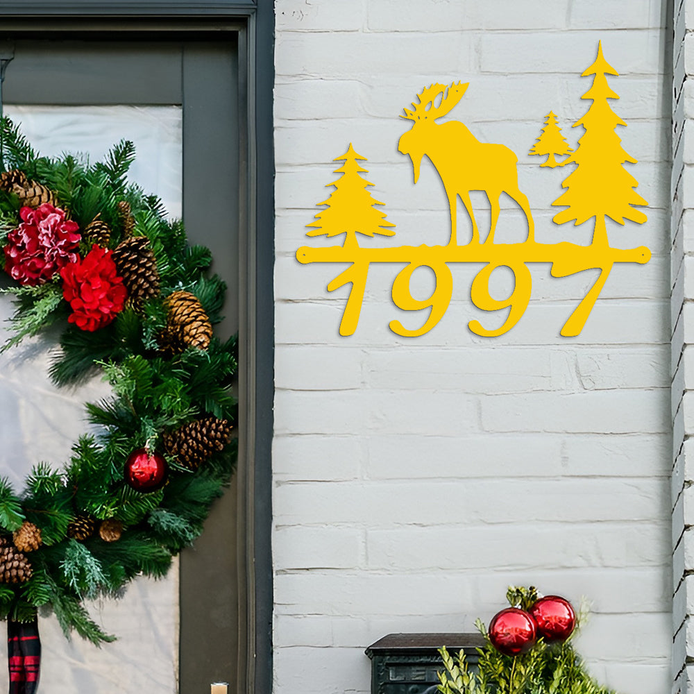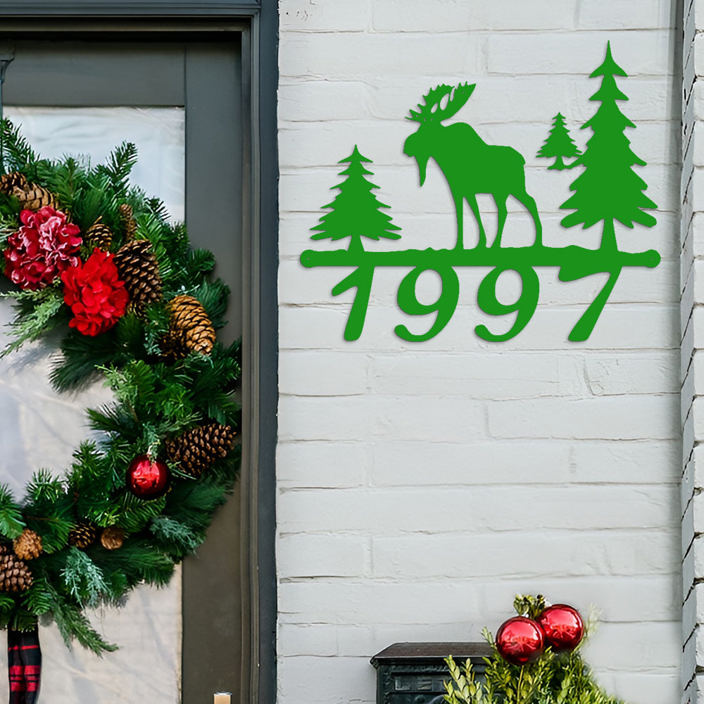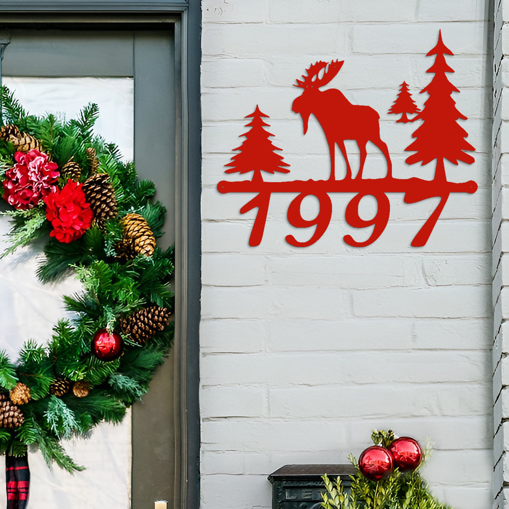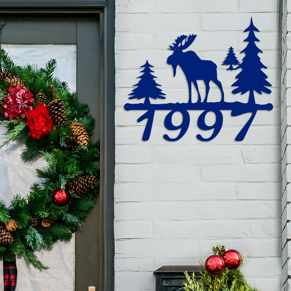 Moose And Pine Trees Outdoor Rustic Custom Address Metal Sign