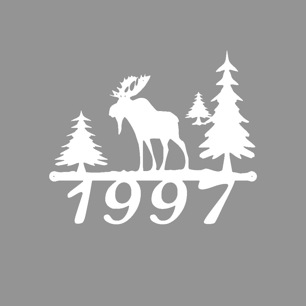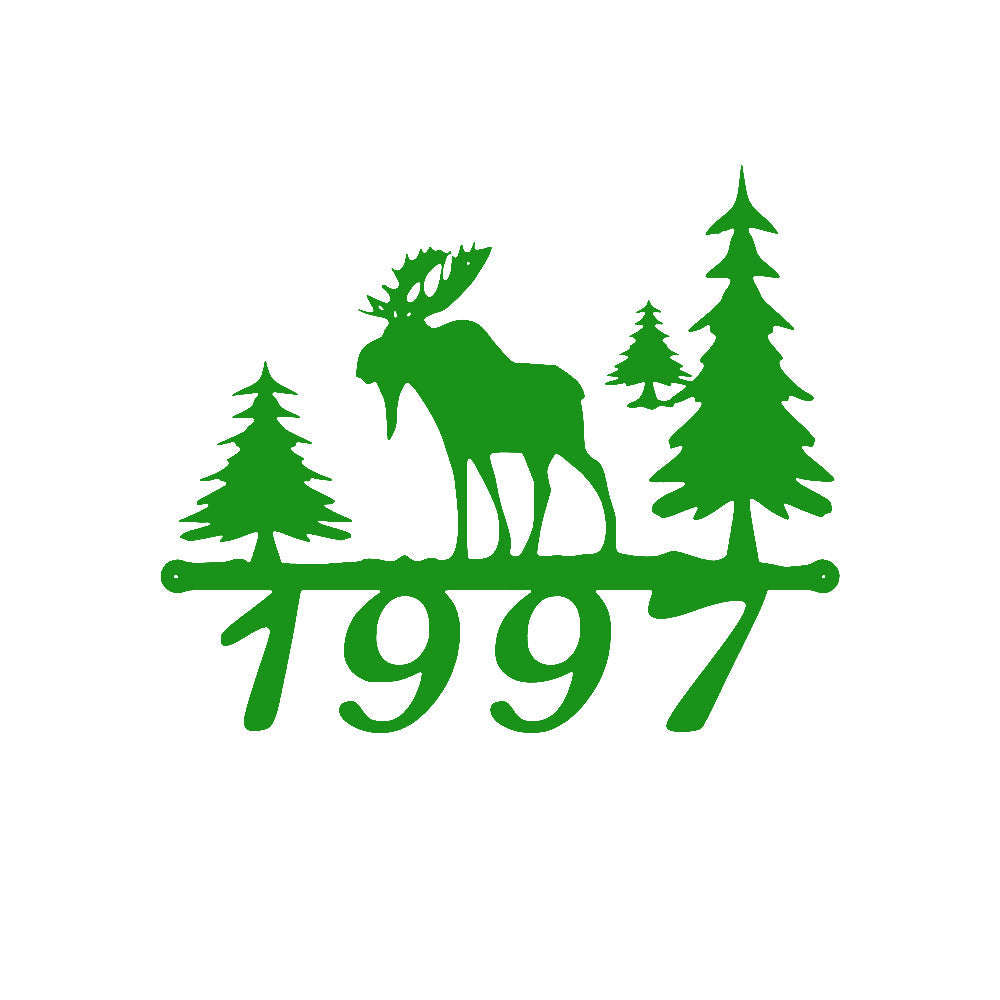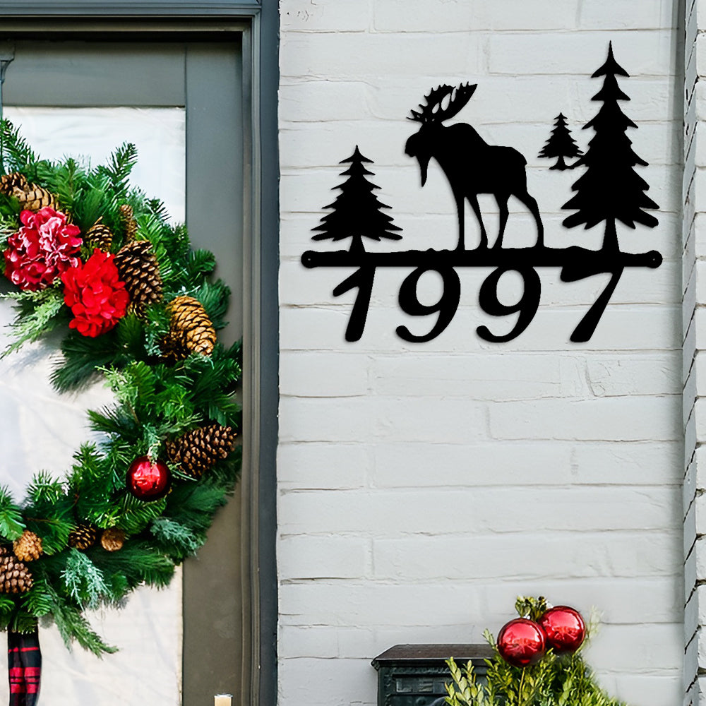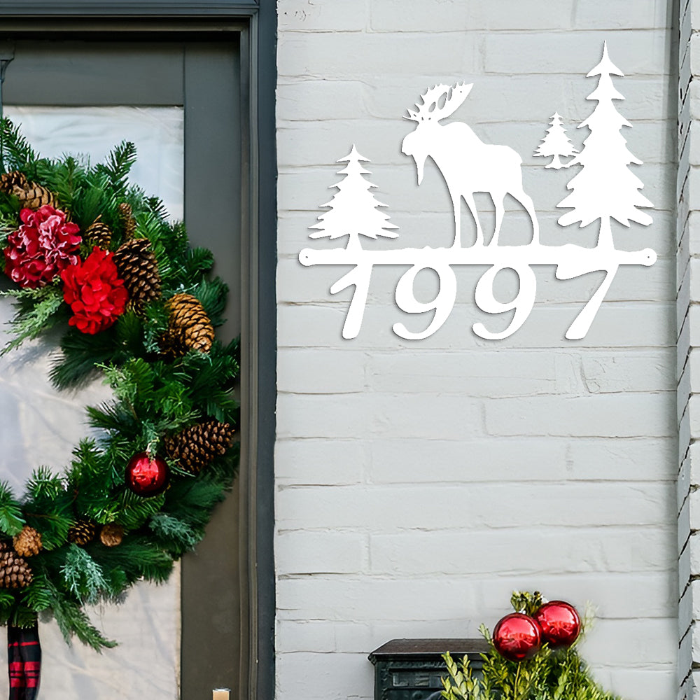 Moose And Pine Trees Outdoor Rustic Custom Address Metal Sign