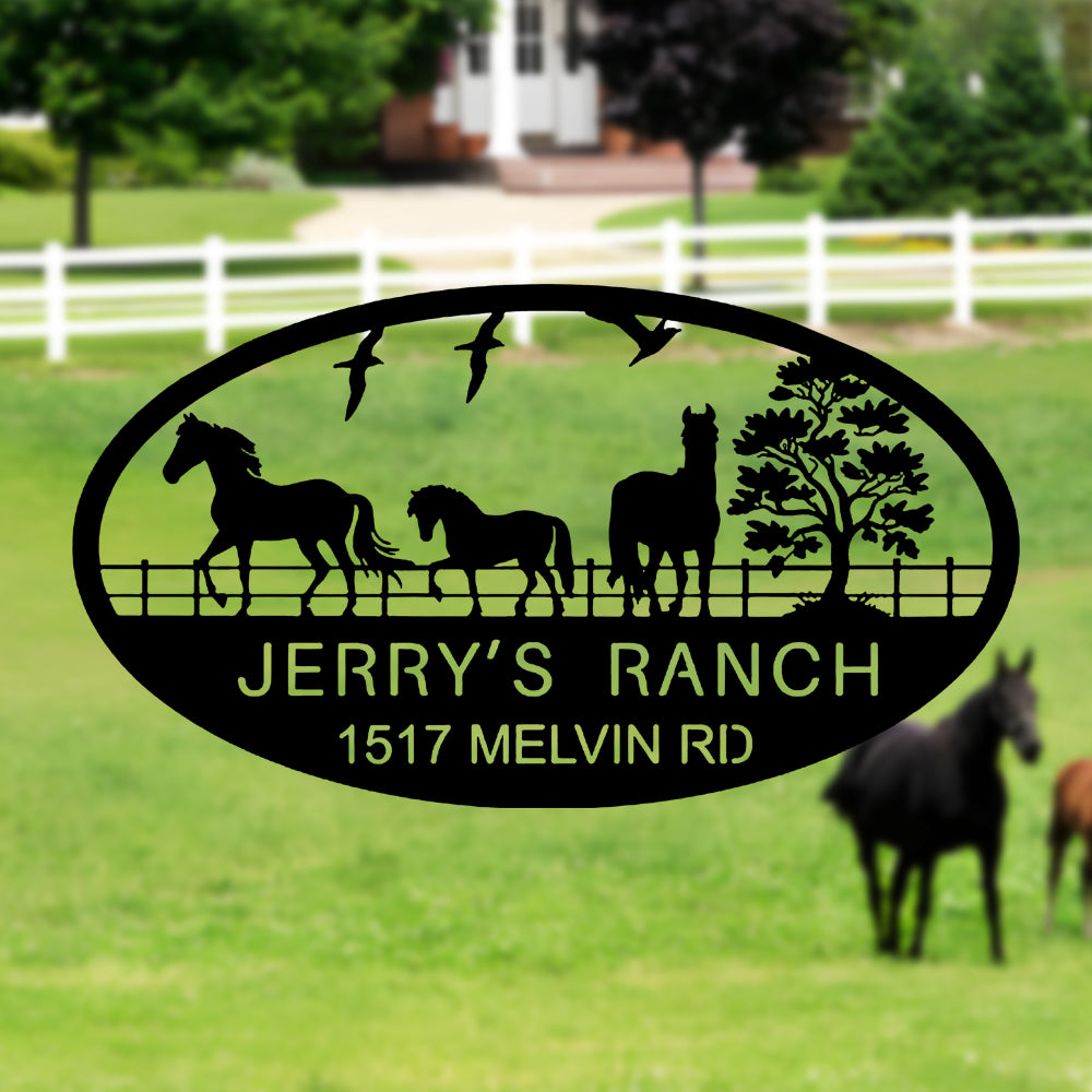 Personalized Horse Farm Plaque with Address Sign Metal Wall Art Decoration