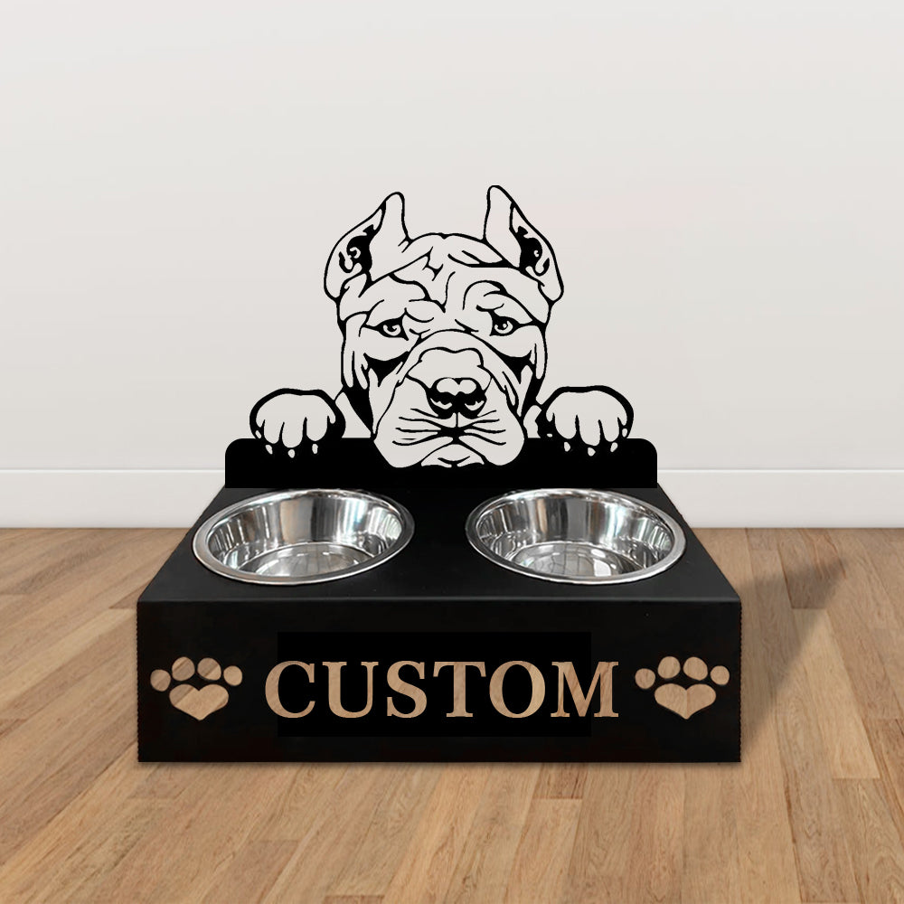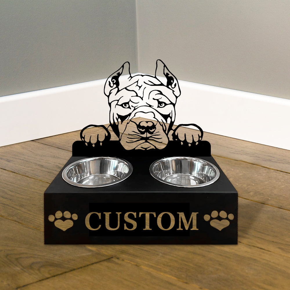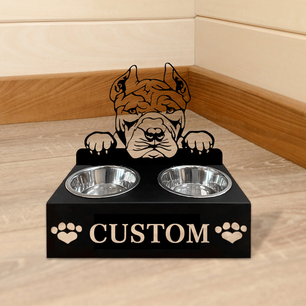 American Bully Personalized Name Pet Food Bowl Holder