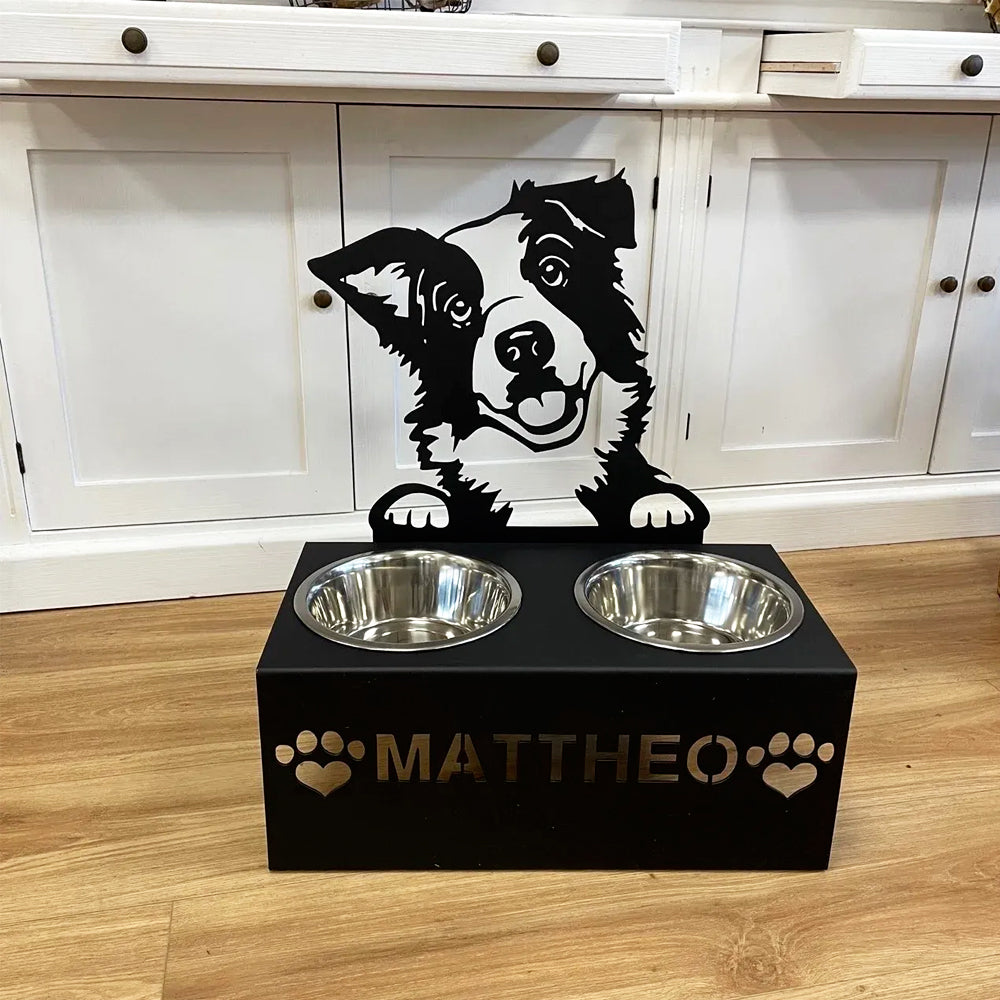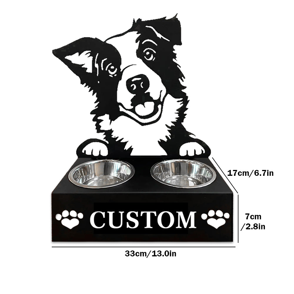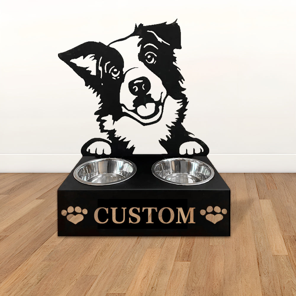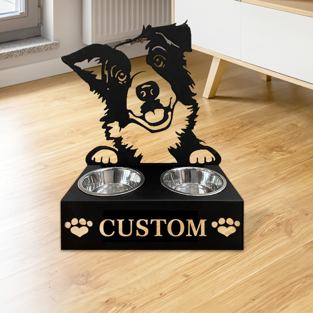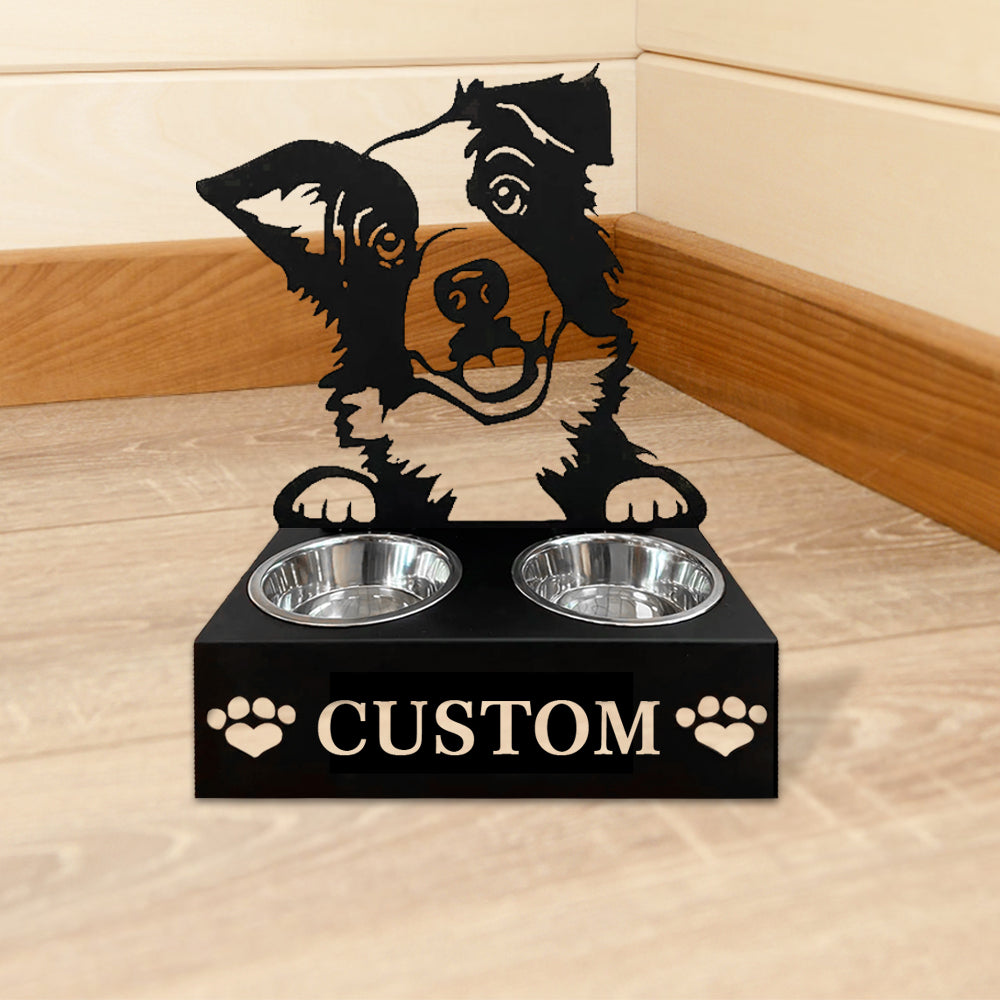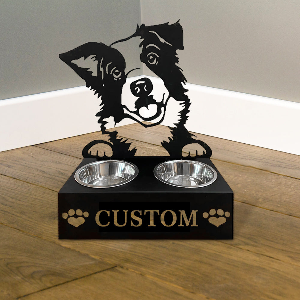Border Collie Personalized Name Pet Food Bowl Holder