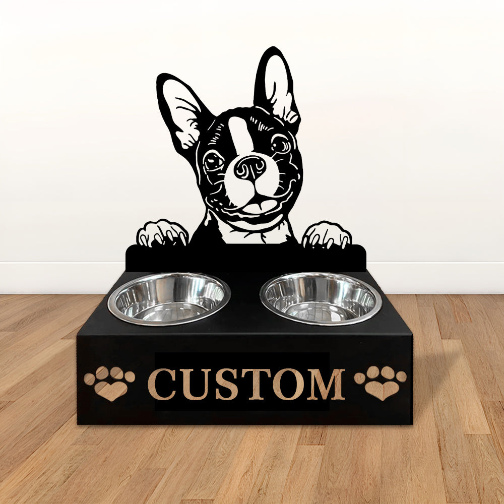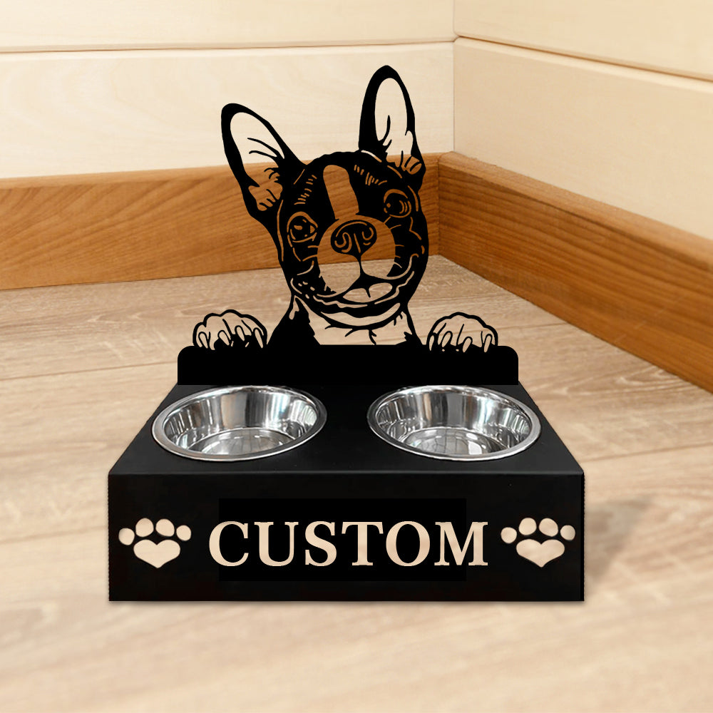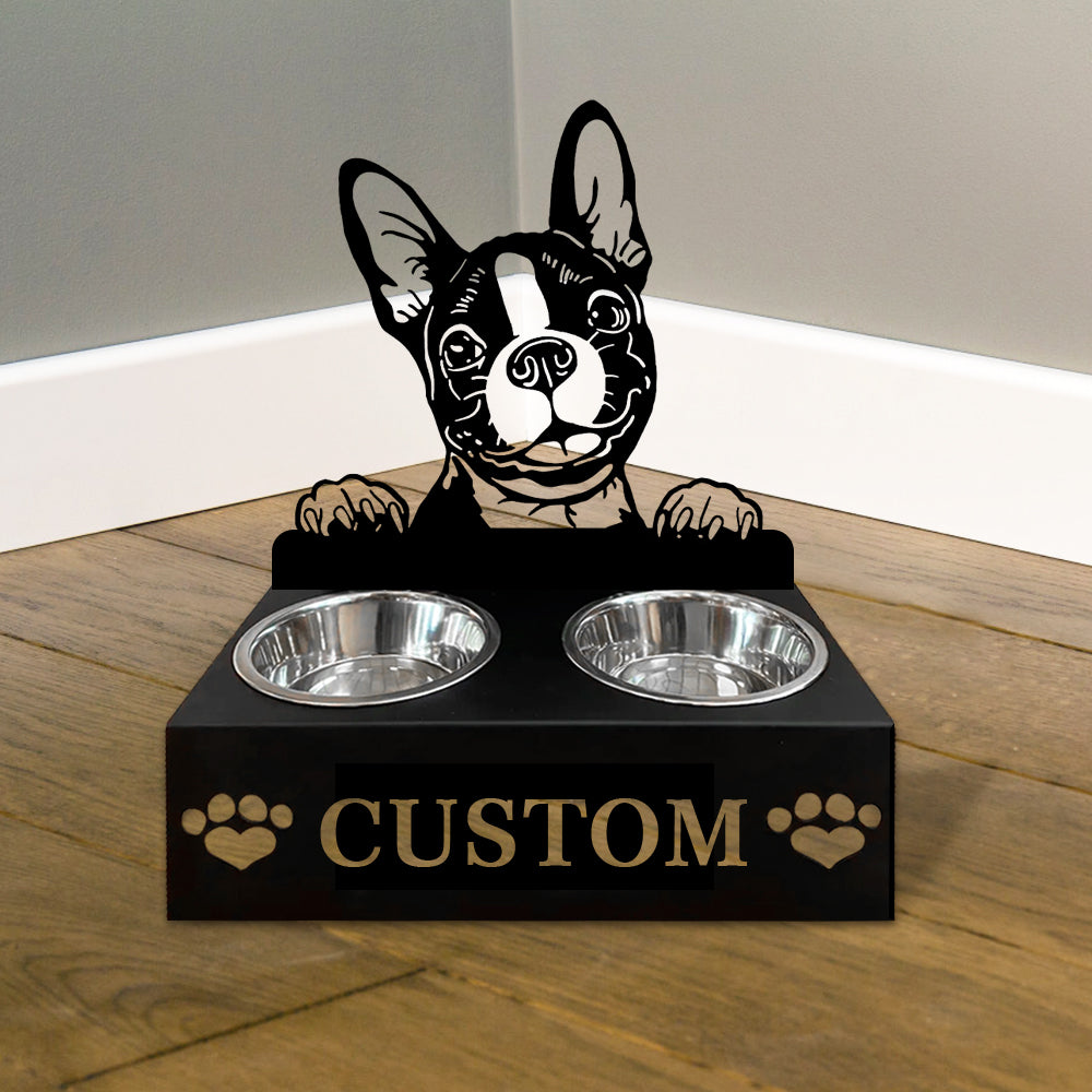 Boston Terrier Personalized Name Pet Food Bowl Holder