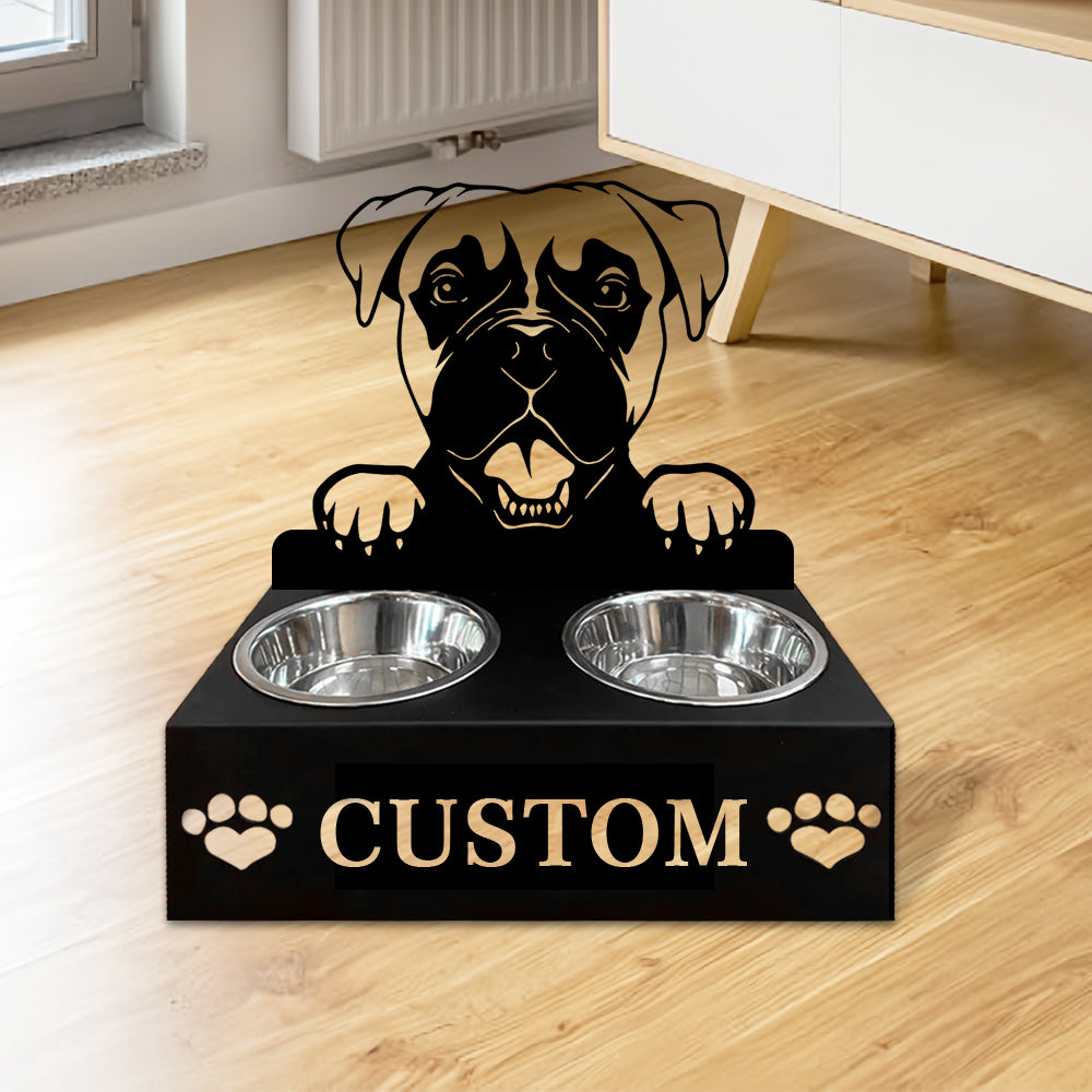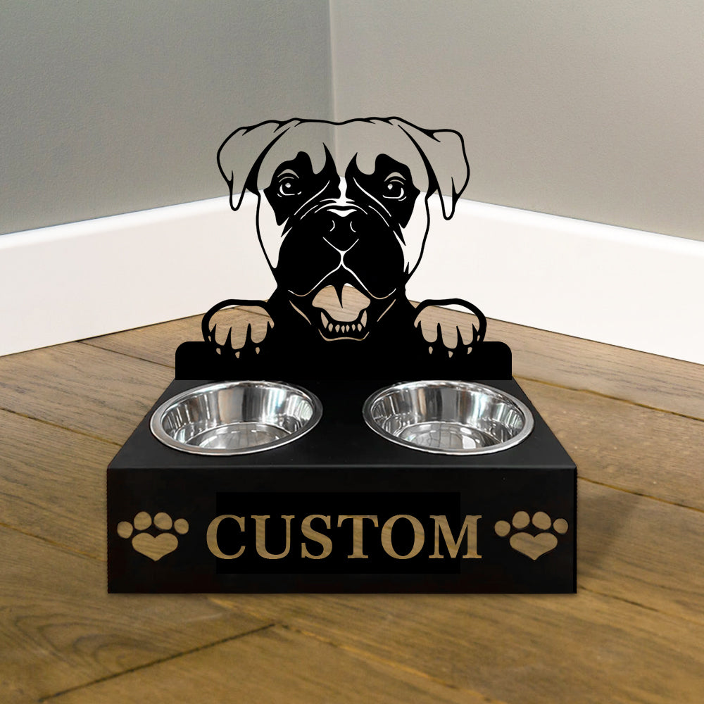 Boxer Dog Personalized Name Pet Food Bowl Holder