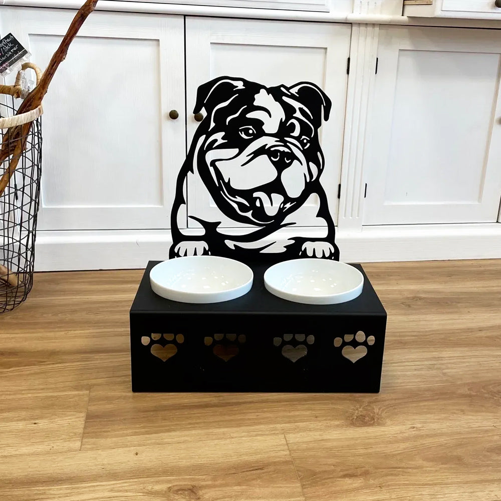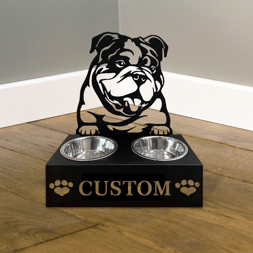 English Bulldog Personalized Name Pet Food Bowl Holder