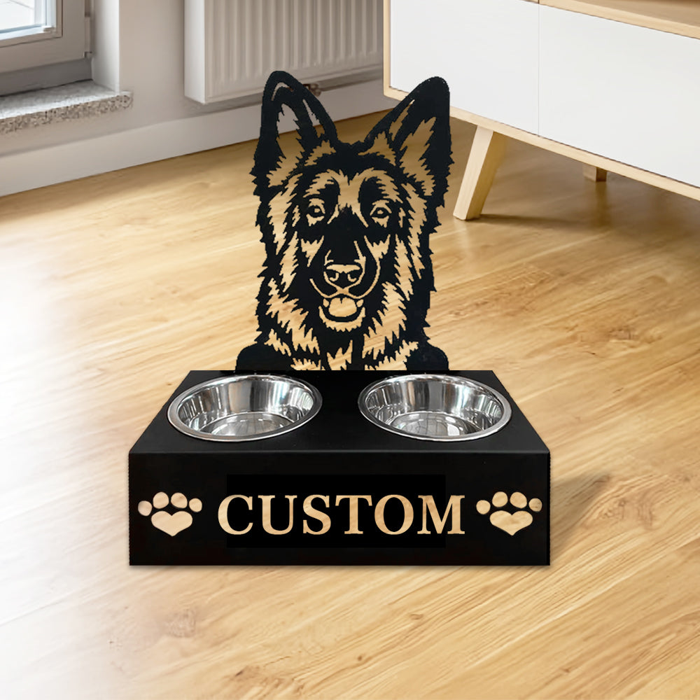 German Shepherd Personalized Name Pet Food Bowl Holder