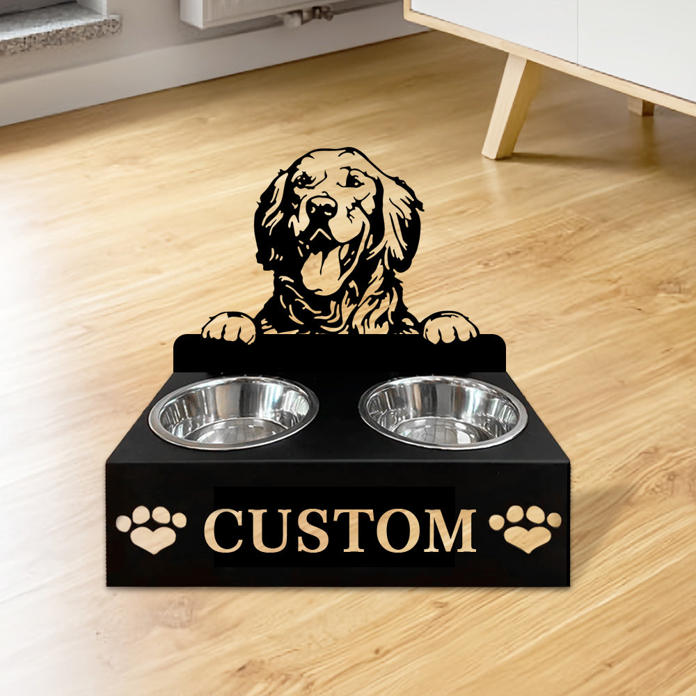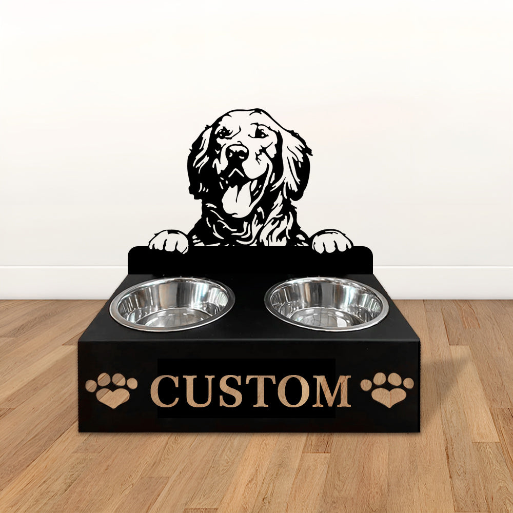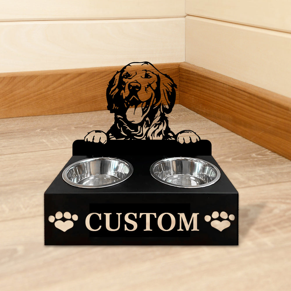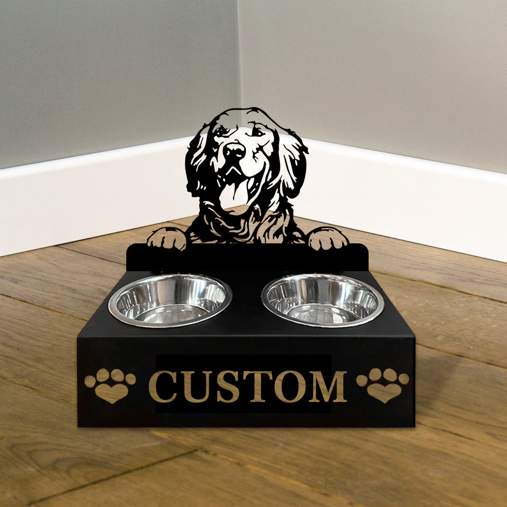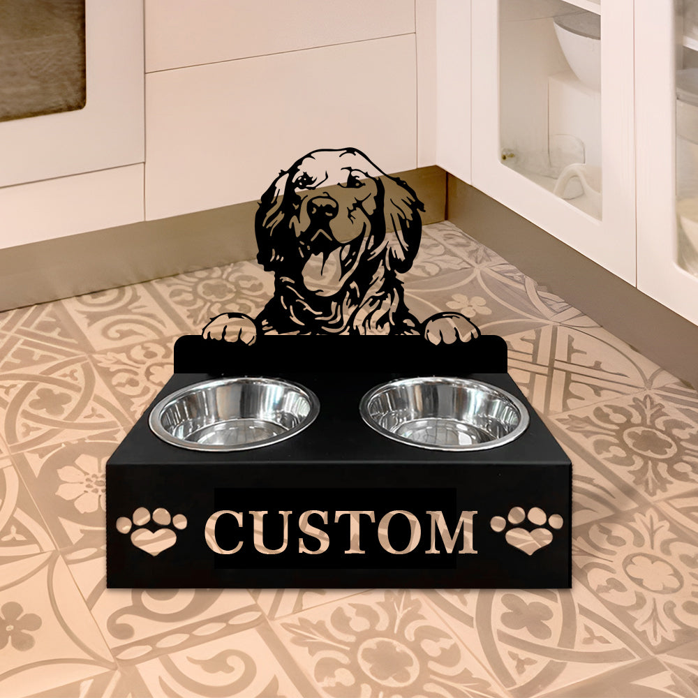 Golden Retriever Personalized Name Pet Food Bowl Holder