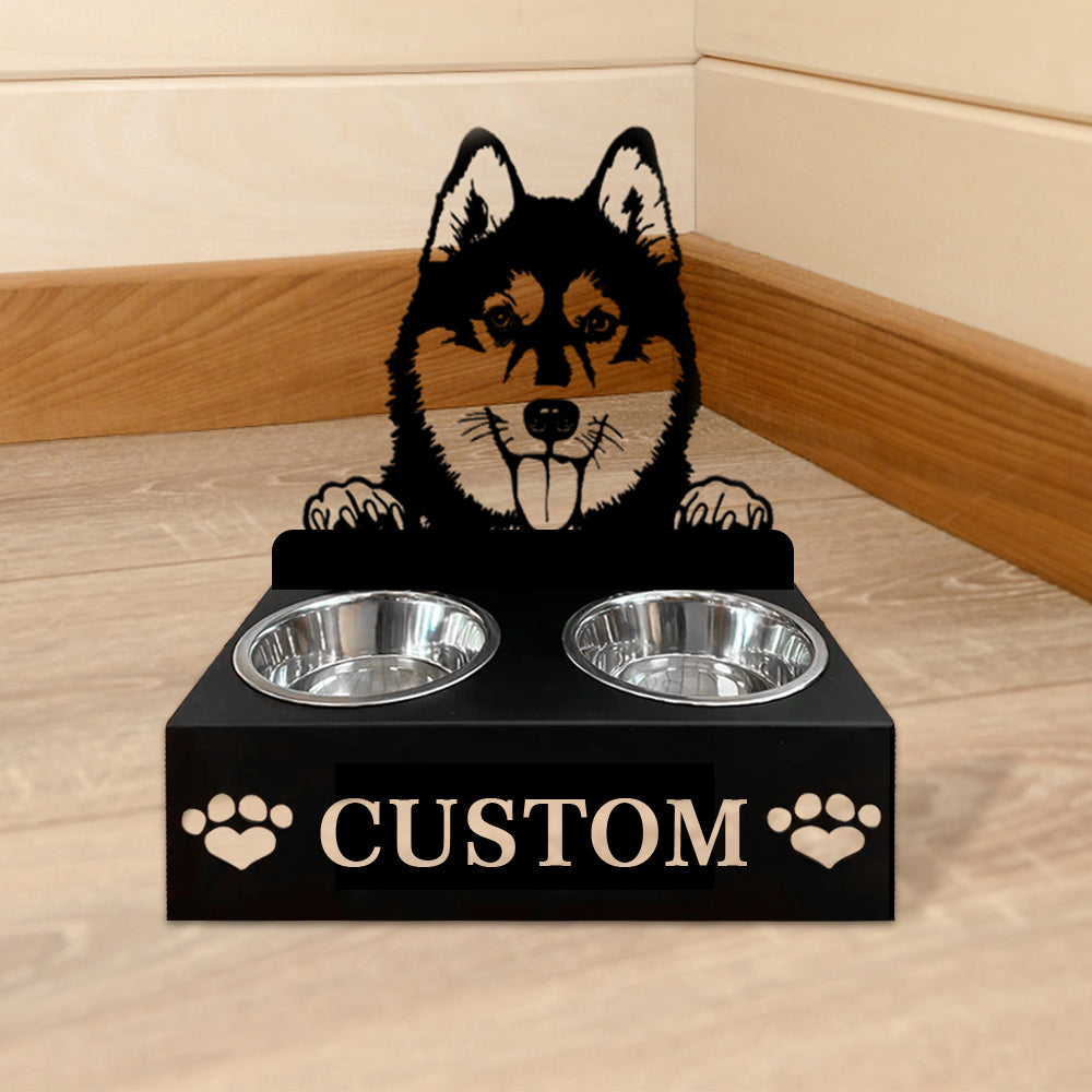 Husky Personalized Name Pet Food Bowl Holder