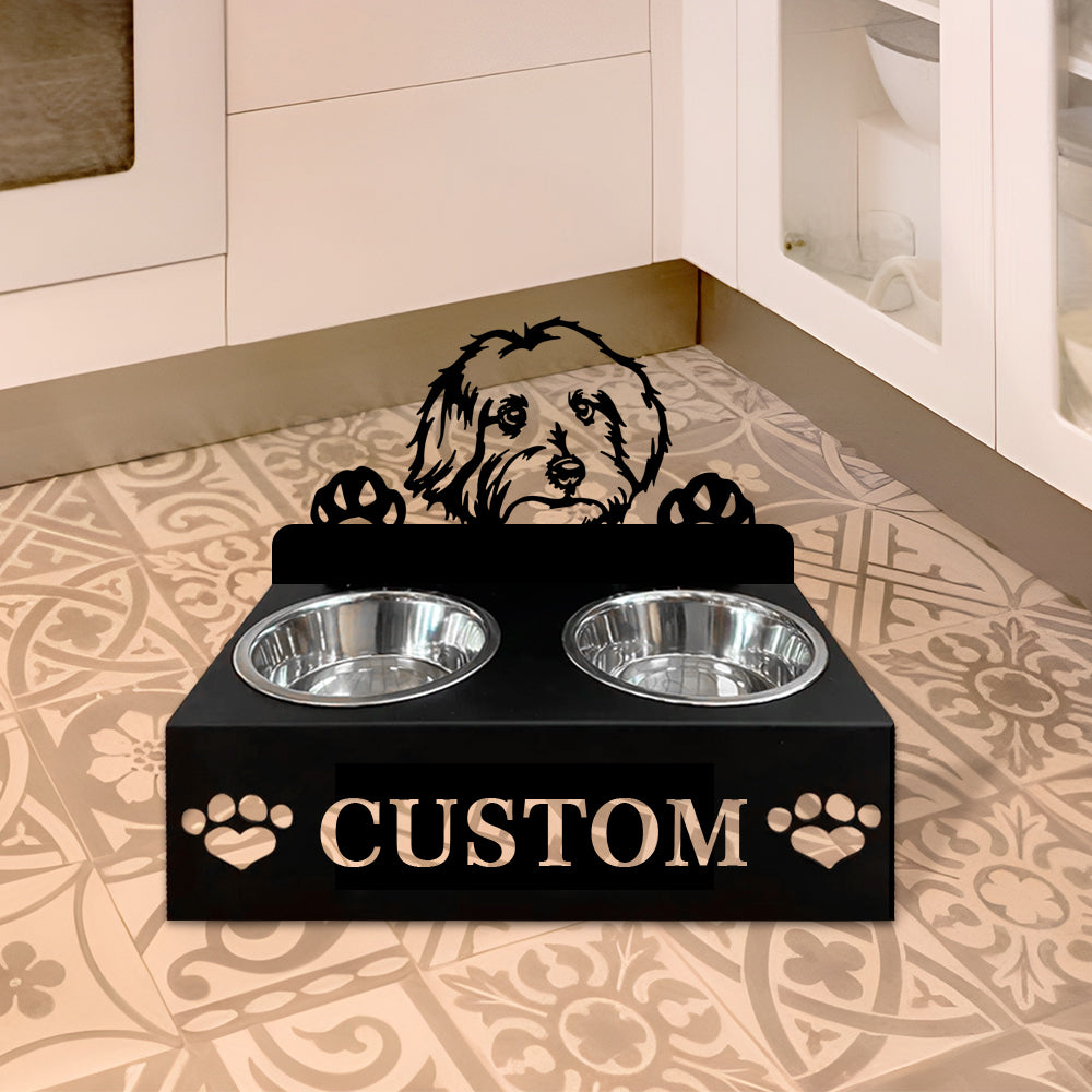 Maltese Dog Personalized Name Pet Food Bowl Holder